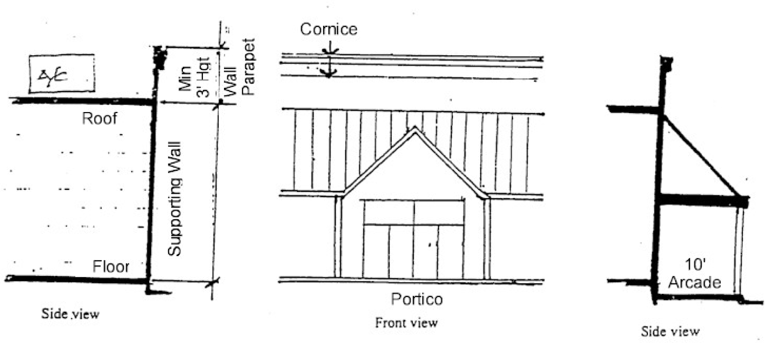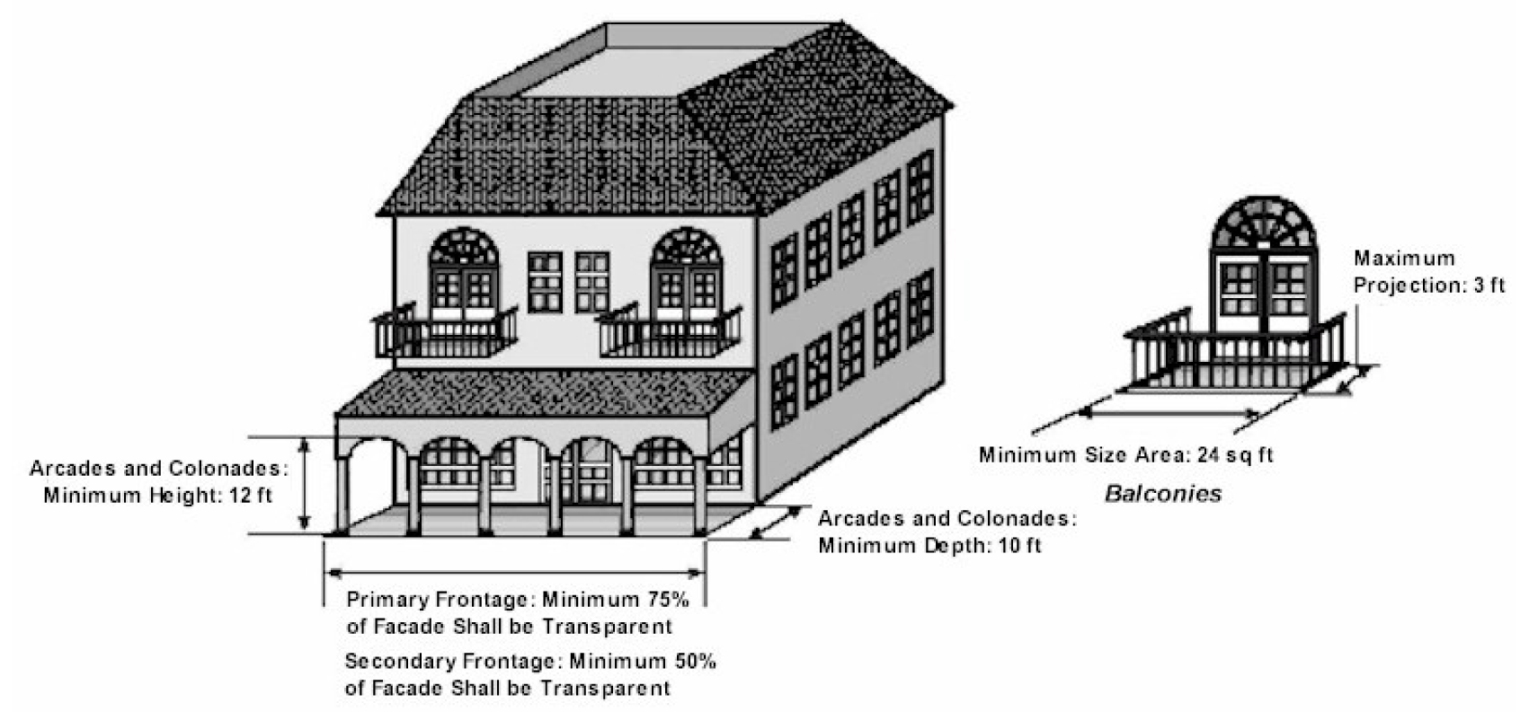 Primary façade typically is the façade of the building which is most nearly parallel to the widest street to which the building faces. It is usually the exterior side of a structure which contains a principal pedestrian entrance and is oriented toward a street. It is usually the side of a building facing a public street. For corner lots, the street facing side with the primary customer entrance is the primary façade.