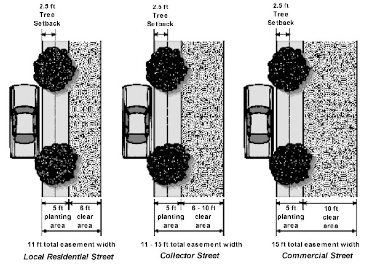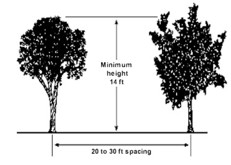 Trees. Trees shall be permitted in the clear space if foliage is cut away within the prescribed heights.