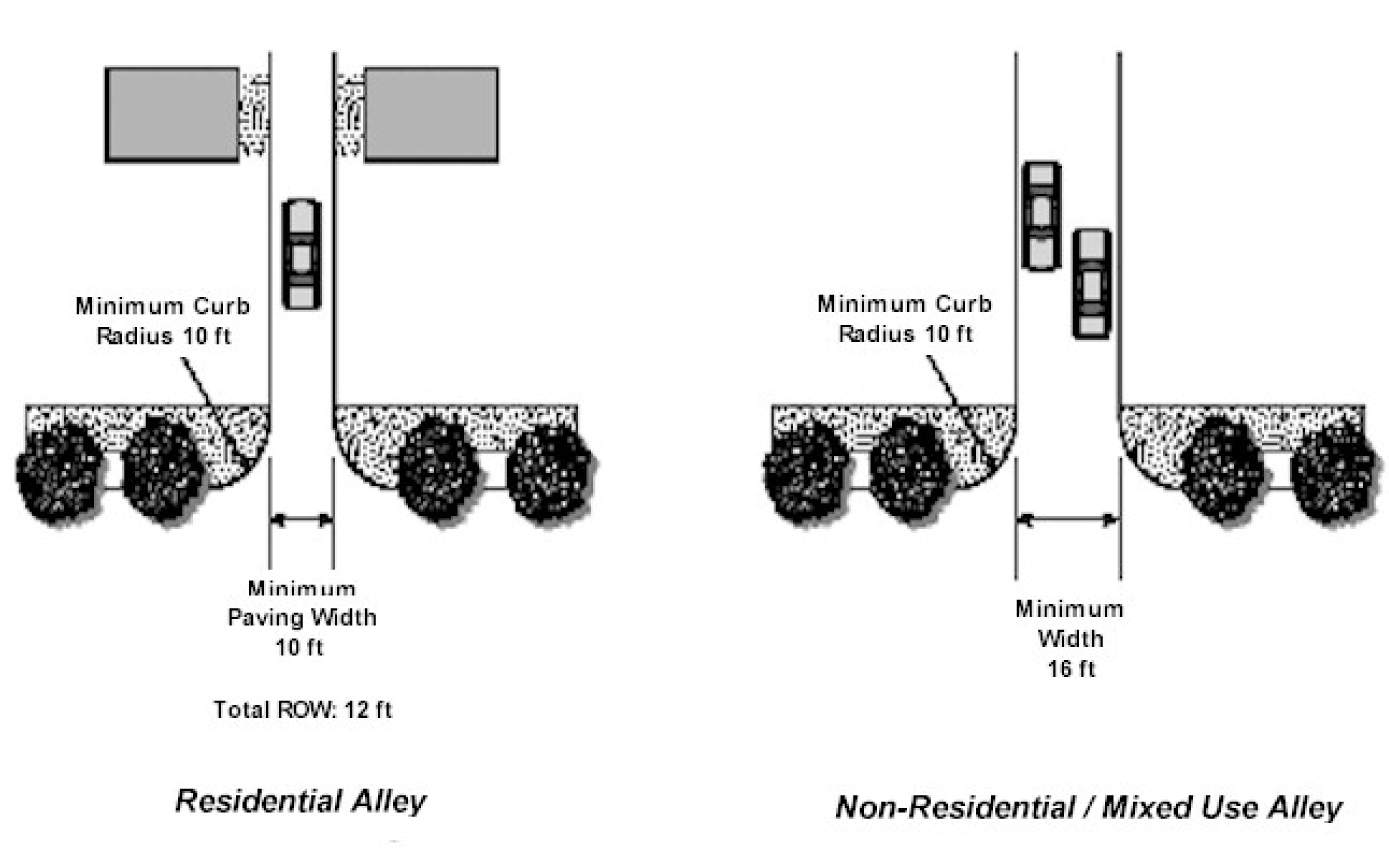 Other types of construction and/or materials may be utilized for the base and surface the roadway if equal or greater strength requirements are met, and if approved by the city engineer (for example: colored concrete or brick pavers).