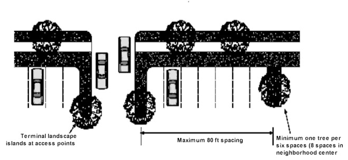 The width of a curb break (measured at the street right-of-way) shall be a minimum of 12 feet and a maximum of 60 feet, as more particularly defined below: