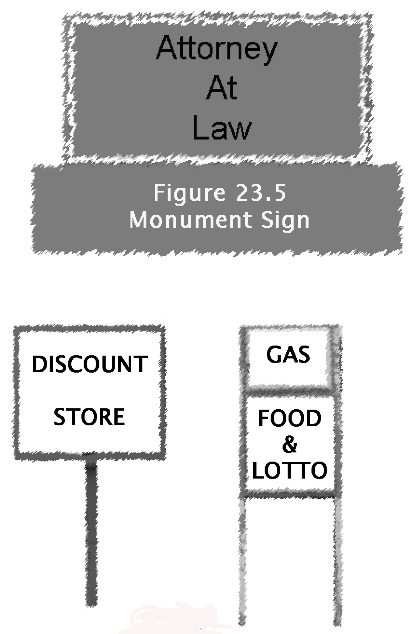 Pole sign. A pole sign is a sign that is constructed so that the sign face is attached to a pole or poles, suspended above the ground. See Figure 23.6.