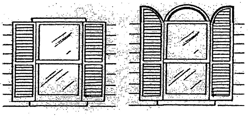 Shutters. All window shutters must have the dimensions of operable shutters and hardware that makes the shutters appear to be operable even if the shutters are permanently fixed in an open position (see figure below).