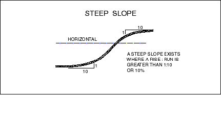 Steep Slope: Land comprising or adjacent to a ravine or lake bluff where the slope in ascent or descent exceeds ten (10) percent from the horizontal.