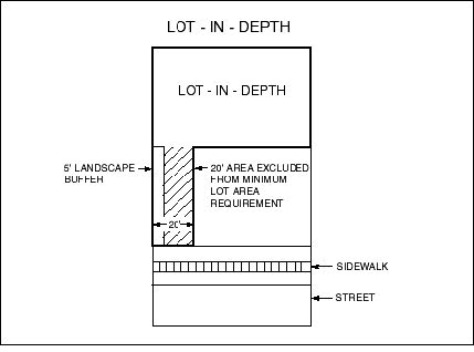 within the stem of the lot-in-depth. Prior to the issuance of an occupancy certificate by the City for structures on the lot-in-depth, within each five foot landscape buffer the owner of the lot-in-depth shall provide a shrub screen and groundcover plantings meeting the visual clearance requirements of this Chapter.