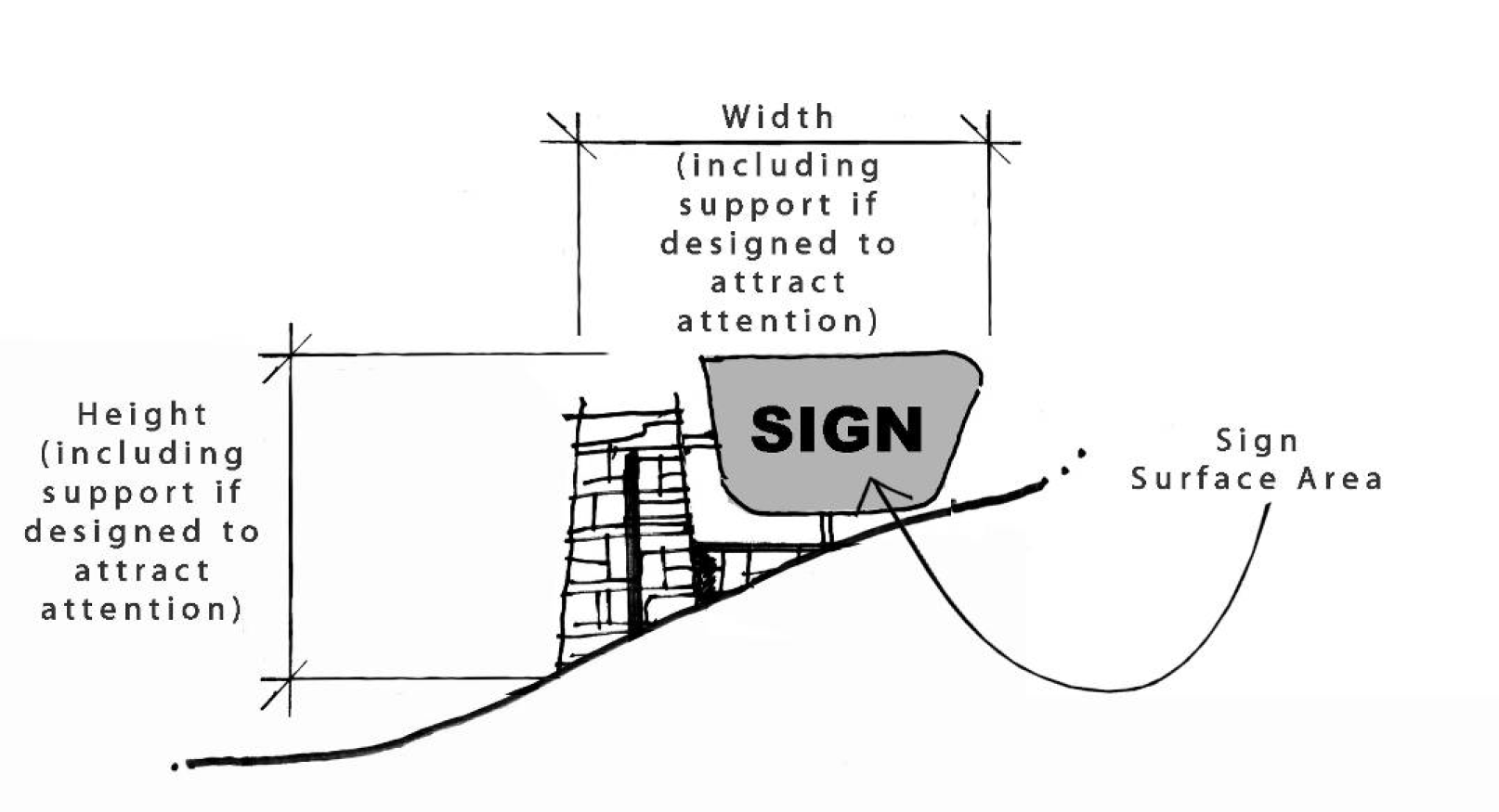 Sign Height. The height of a sign shall be measured as the distance from finish grade or surface at the base of the sign, or top of sign post footing, to the top of the highest component of the sign, including the sign face or sign structure.