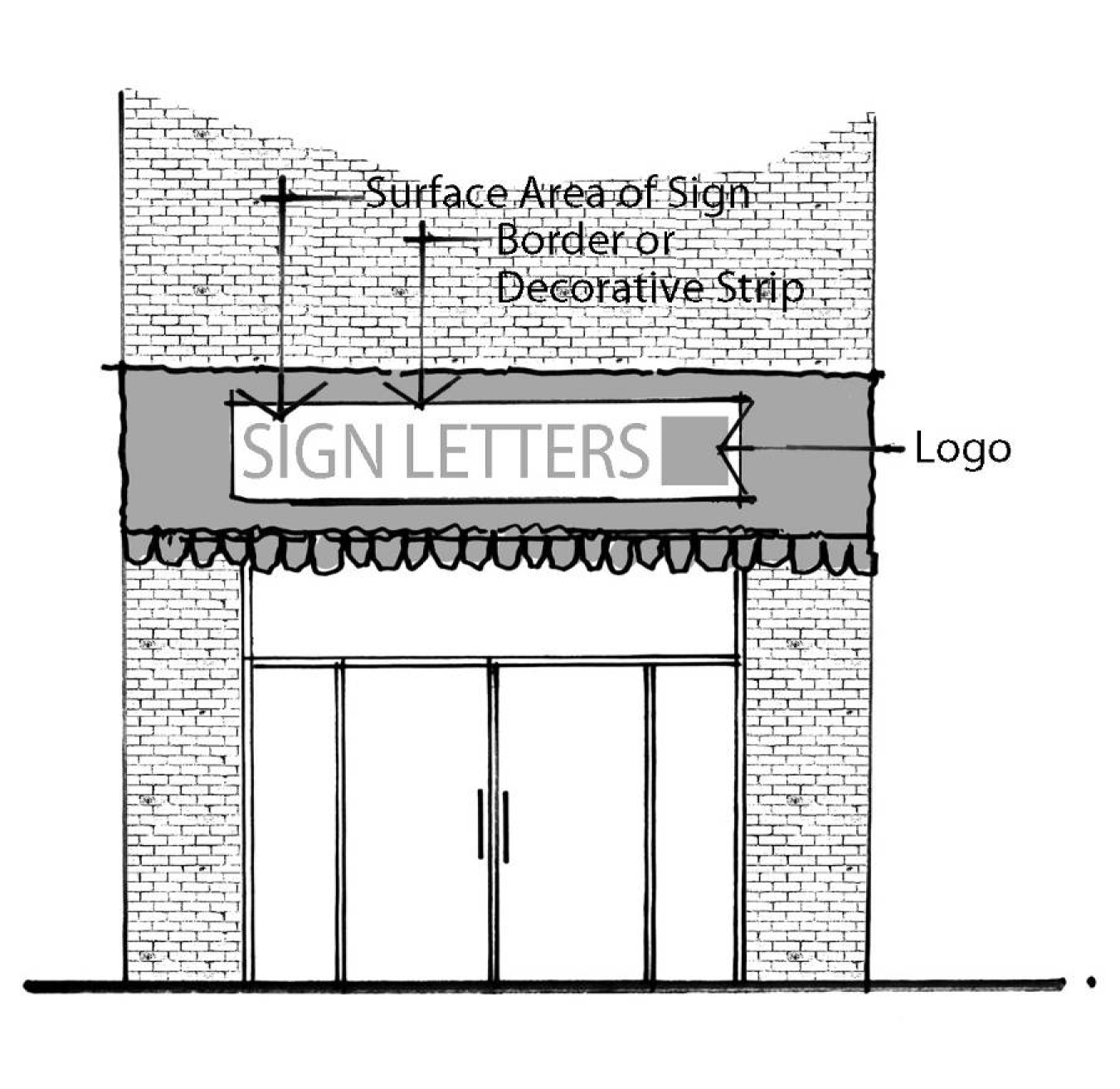 When lettering is highlighted by a border or decorative strip, then the surface area shall be defined as the entire highlighted area as illustrated by Figure 3.