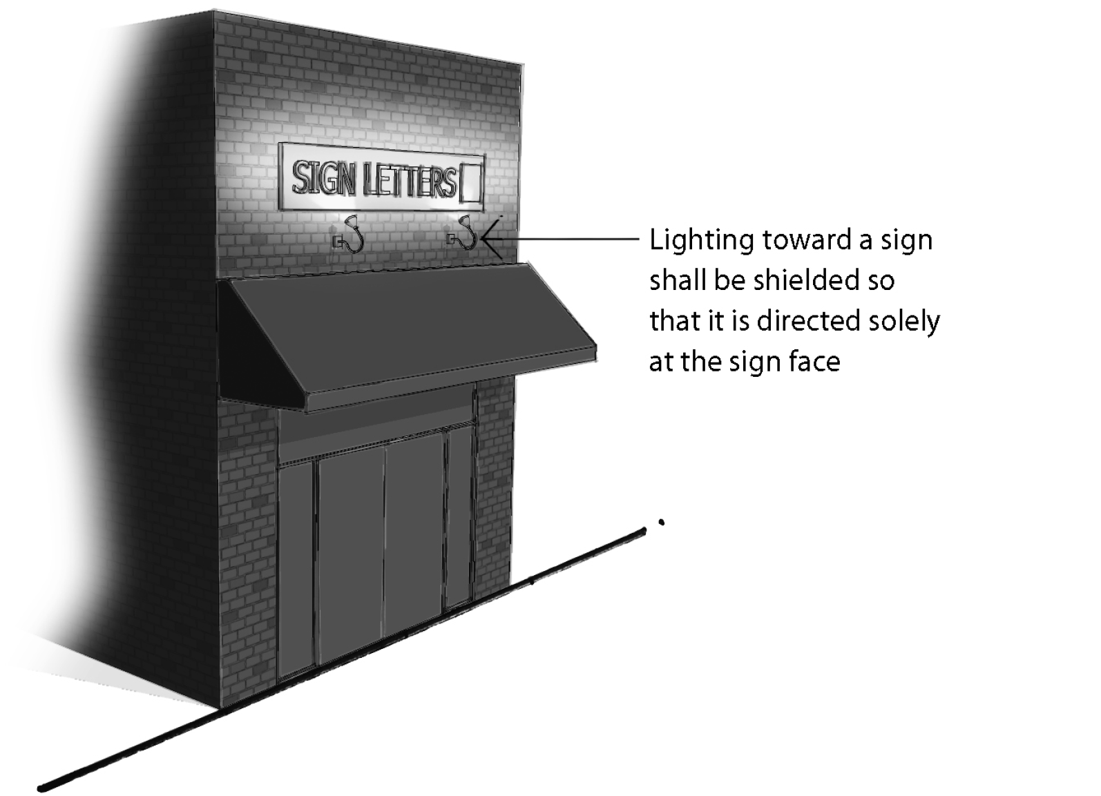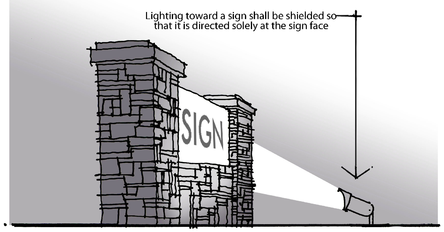 Only a white light source that is shielded and directed solely at the sign face may be used, as illustrated by Figures 5A and 5B; and