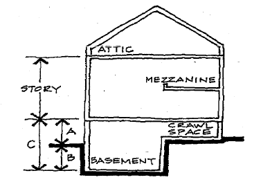 Story. That portion of a building included between the surface of any floor and the surface of the floor next above it, or if there is no floor above it, then the space between the floor and the ceiling next above it and including those basements used for the principal use. See Diagram for Definition # 290B.