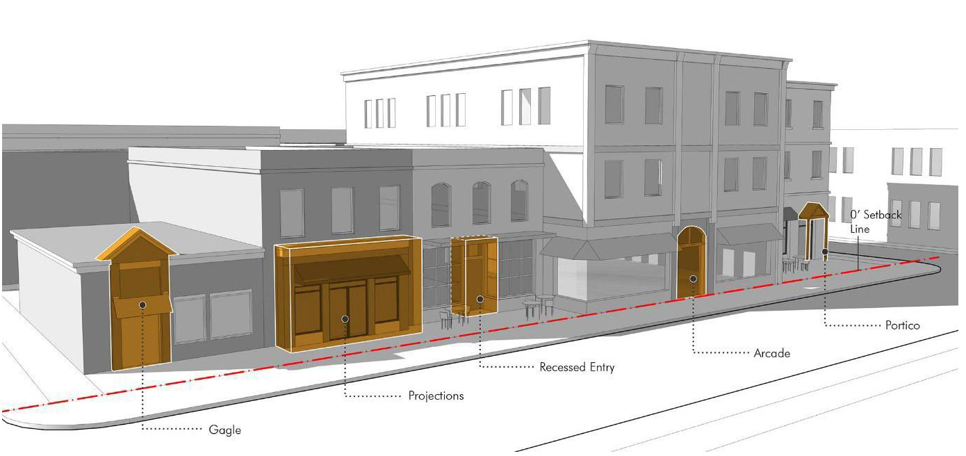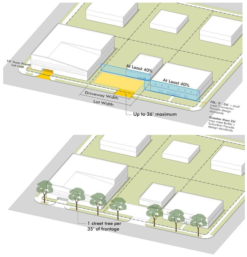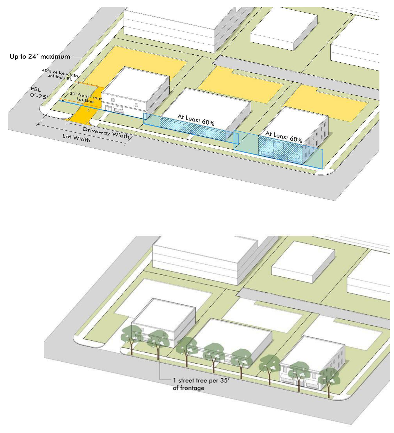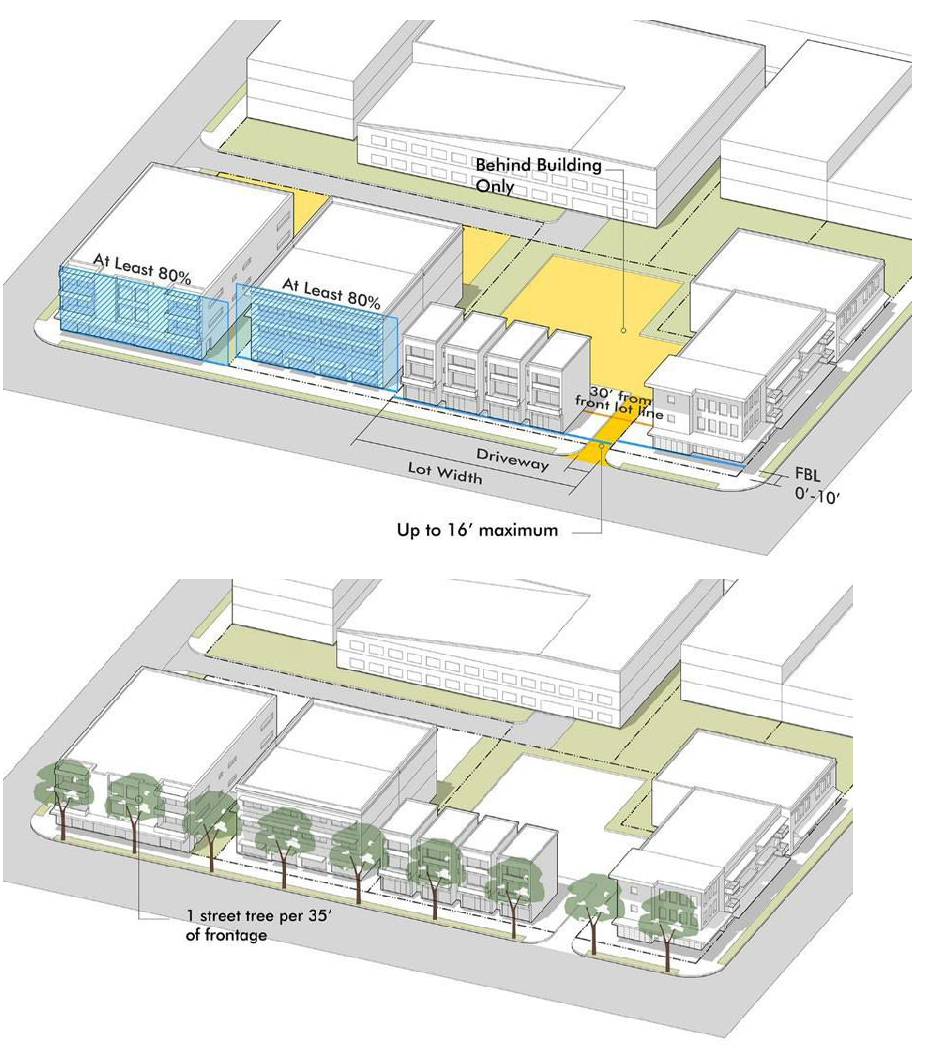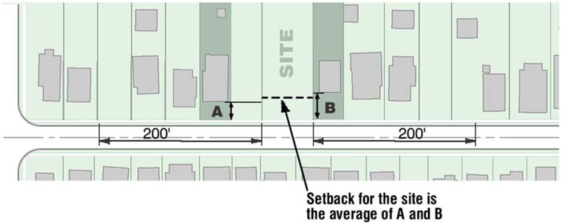Fronts Along Primary and Secondary Thoroughfares 40 Greater of 60 or average setback Greater of 50 or average setback 40 30 30