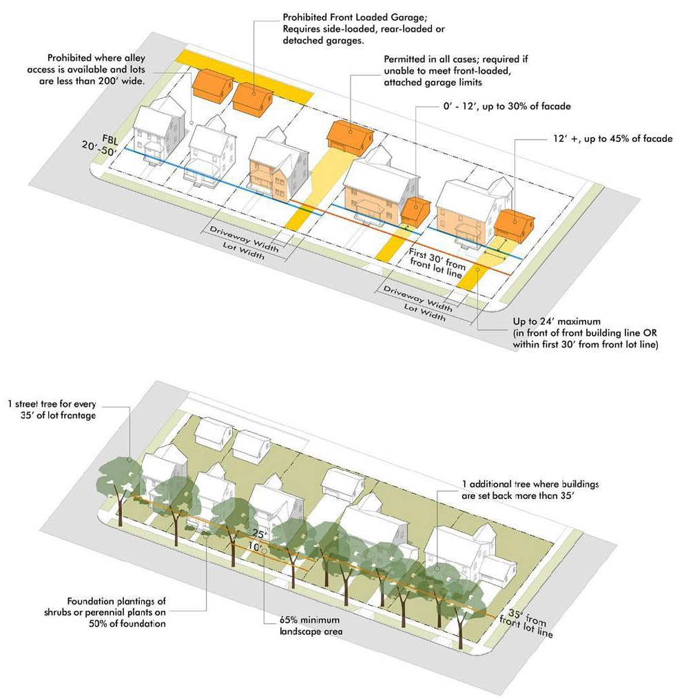 Fronts Along Collector and Local Streets and Cul-de-sacs 35 Greater of 40 or average setback Greater of 30 or average setback 25 20 20