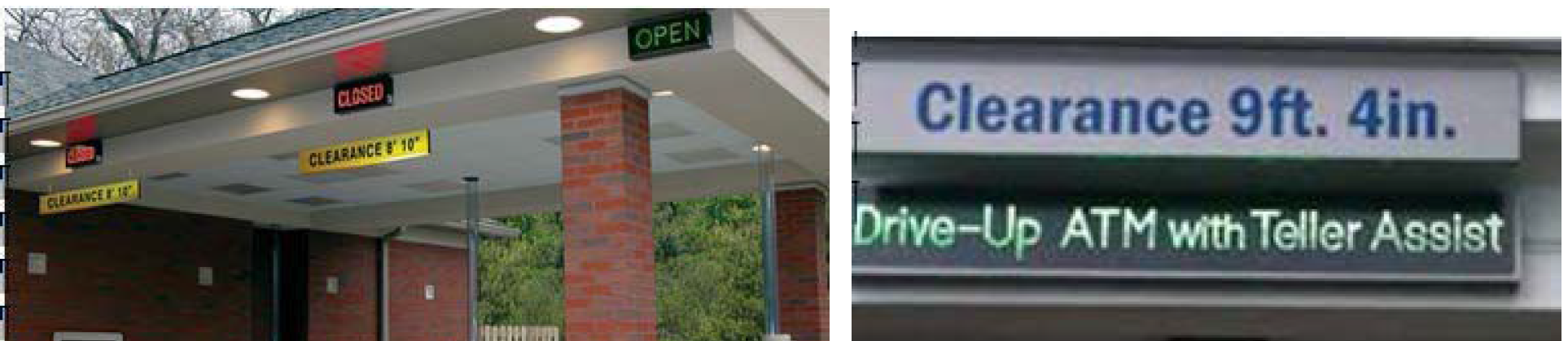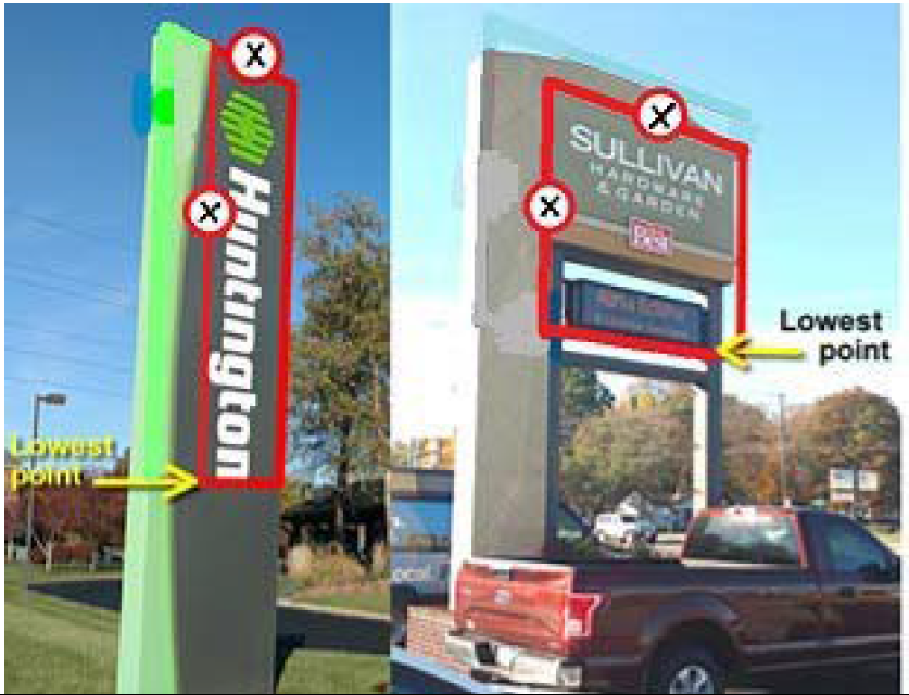 Sign clearance: Signs shall not be less than nine feet above grade level at the lowest point, except for the supporting structure.