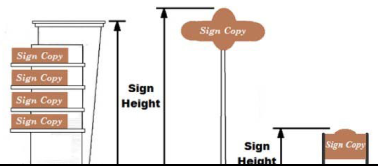 Maximum sign height: The maximum height of signs and sign structures shall not exceed 60 feet above grade level at the base of such sign structure.