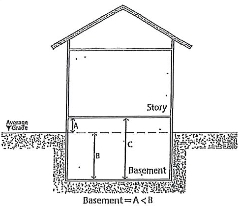 Basement. A story, all or partly underground, having at least one-half of its height below the average level of the adjoining ground with a floor-to-ceiling height of not less than six and a half feet.