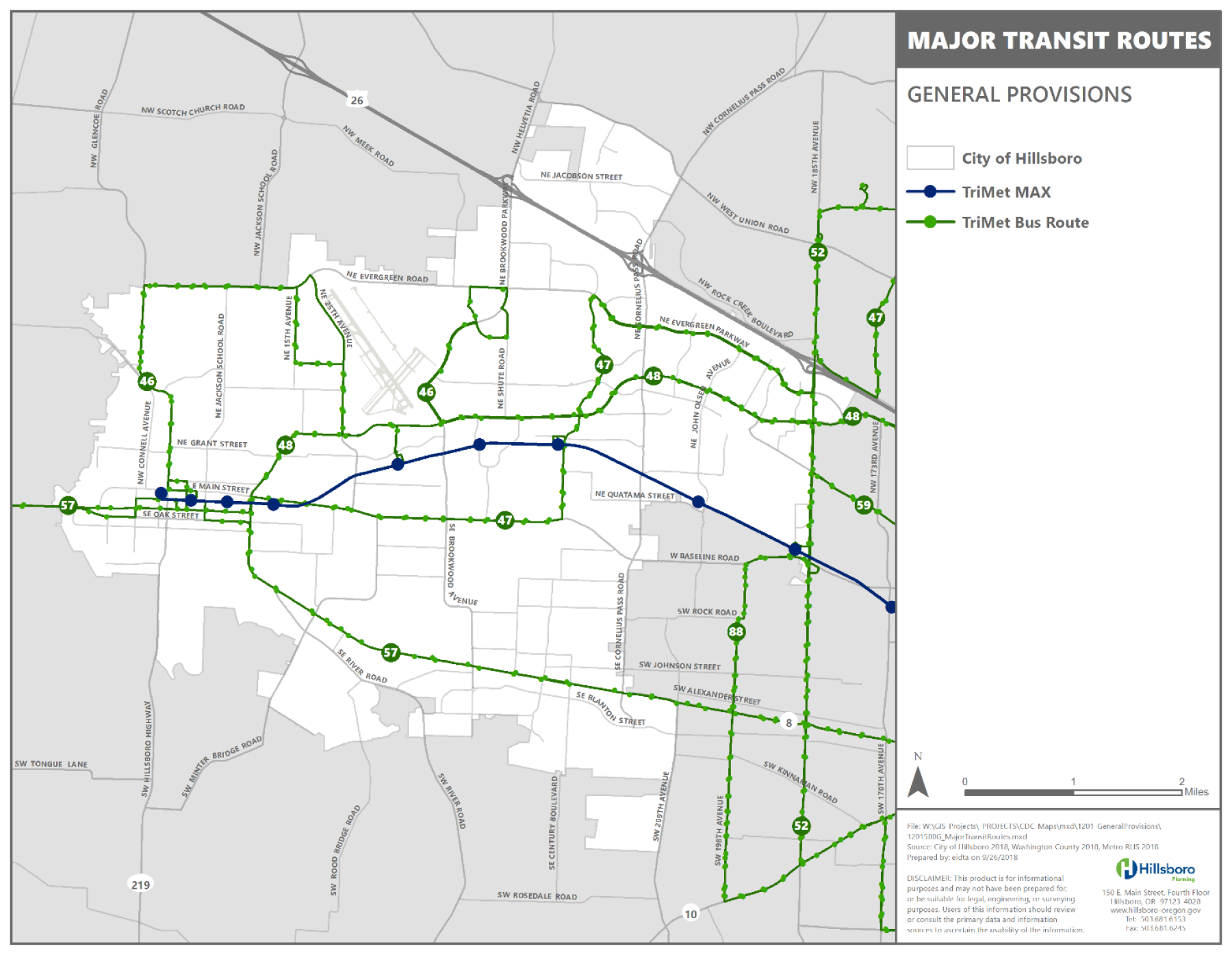 Transit Route, Major. A transit route which serves areas planned and zoned for higher population and employment densities such as Metro 2040-designated regional centers, town centers, employment centers, main streets, station communities, and corridors. As used in this definition, "major transit routes" are limited to the streets shown on Figure 12.01.500-G:
