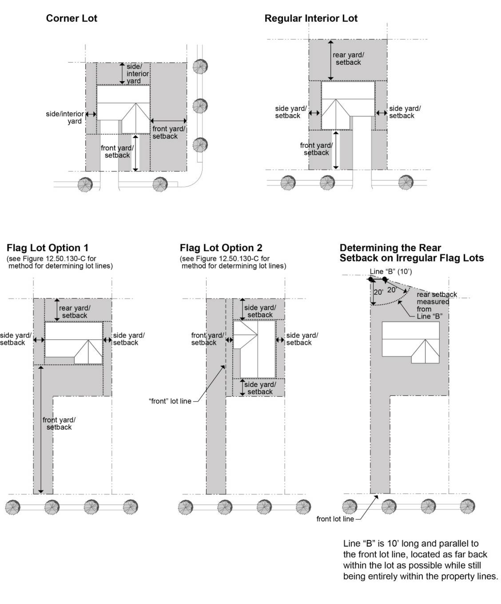 Yard. The area between a structure and a property line. See also Setback. Types of yards are illustrated in Figure 12.01.500-H.