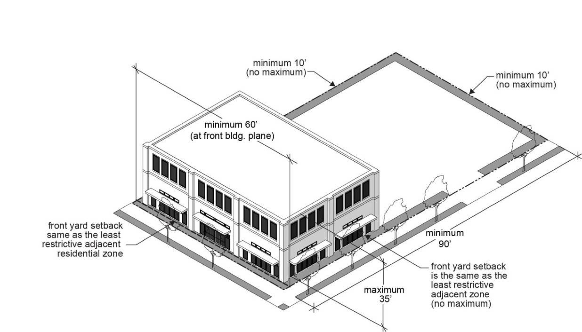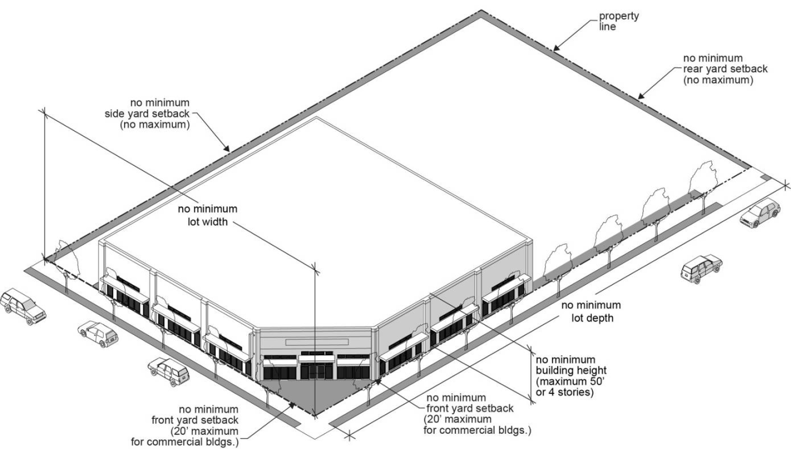 With the exception of the SCC-DT zone, certain development standards are illustrated in a Figure immediately following the development standards table.