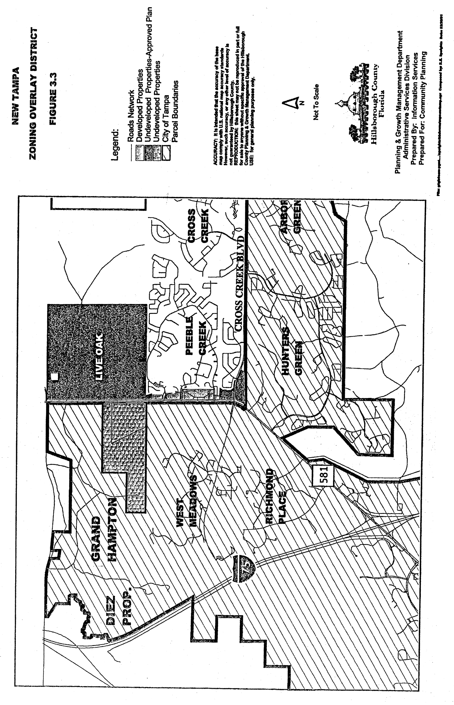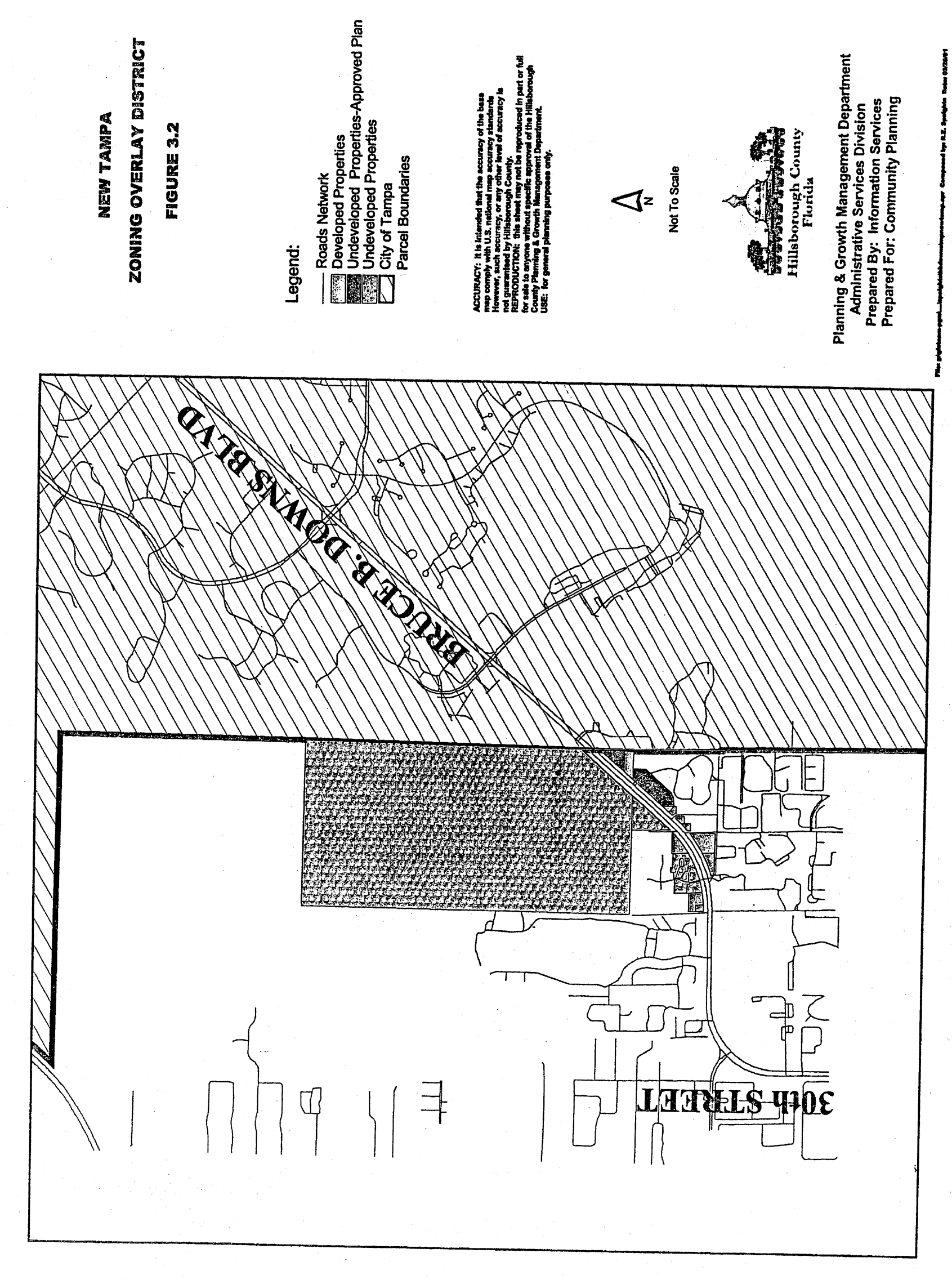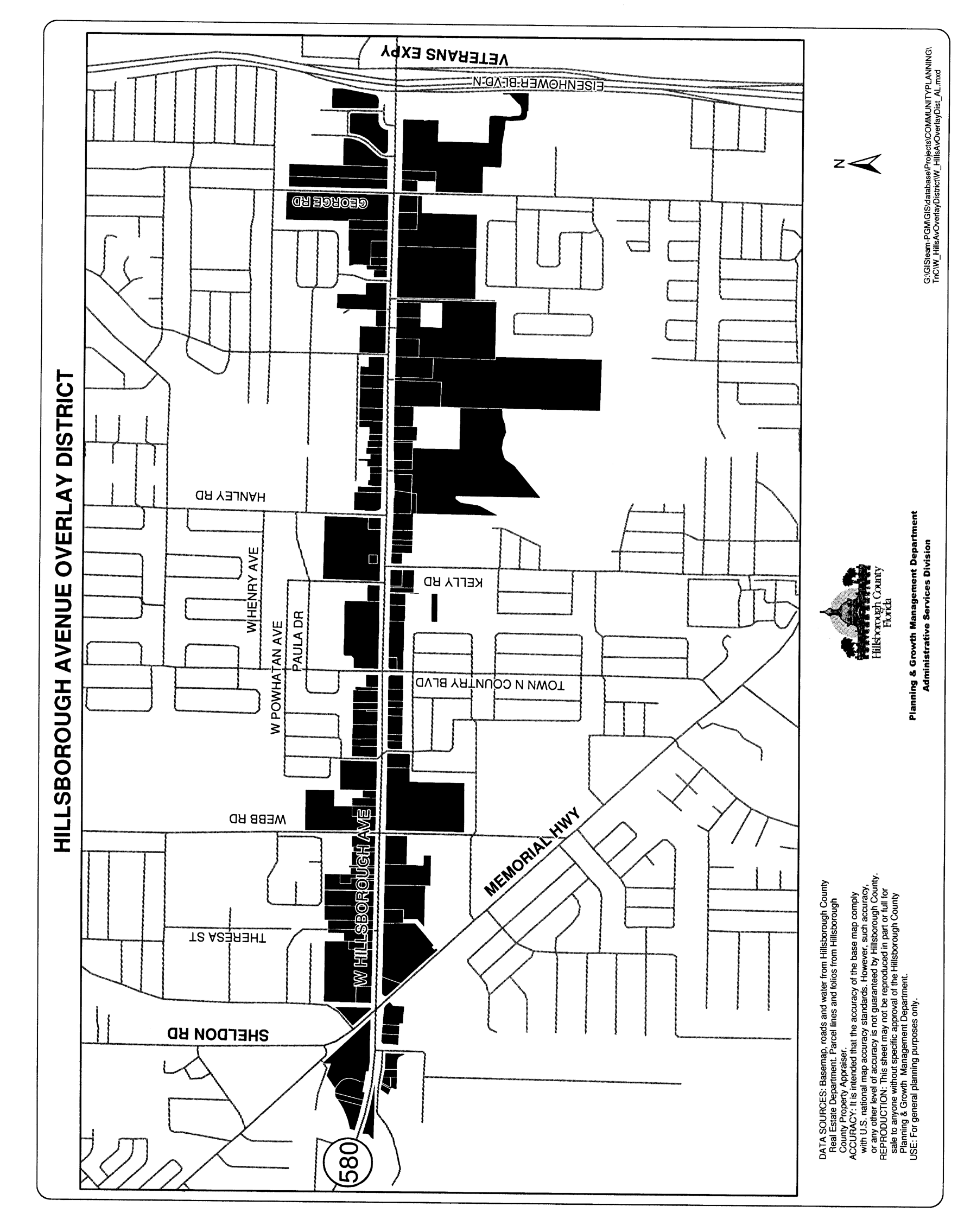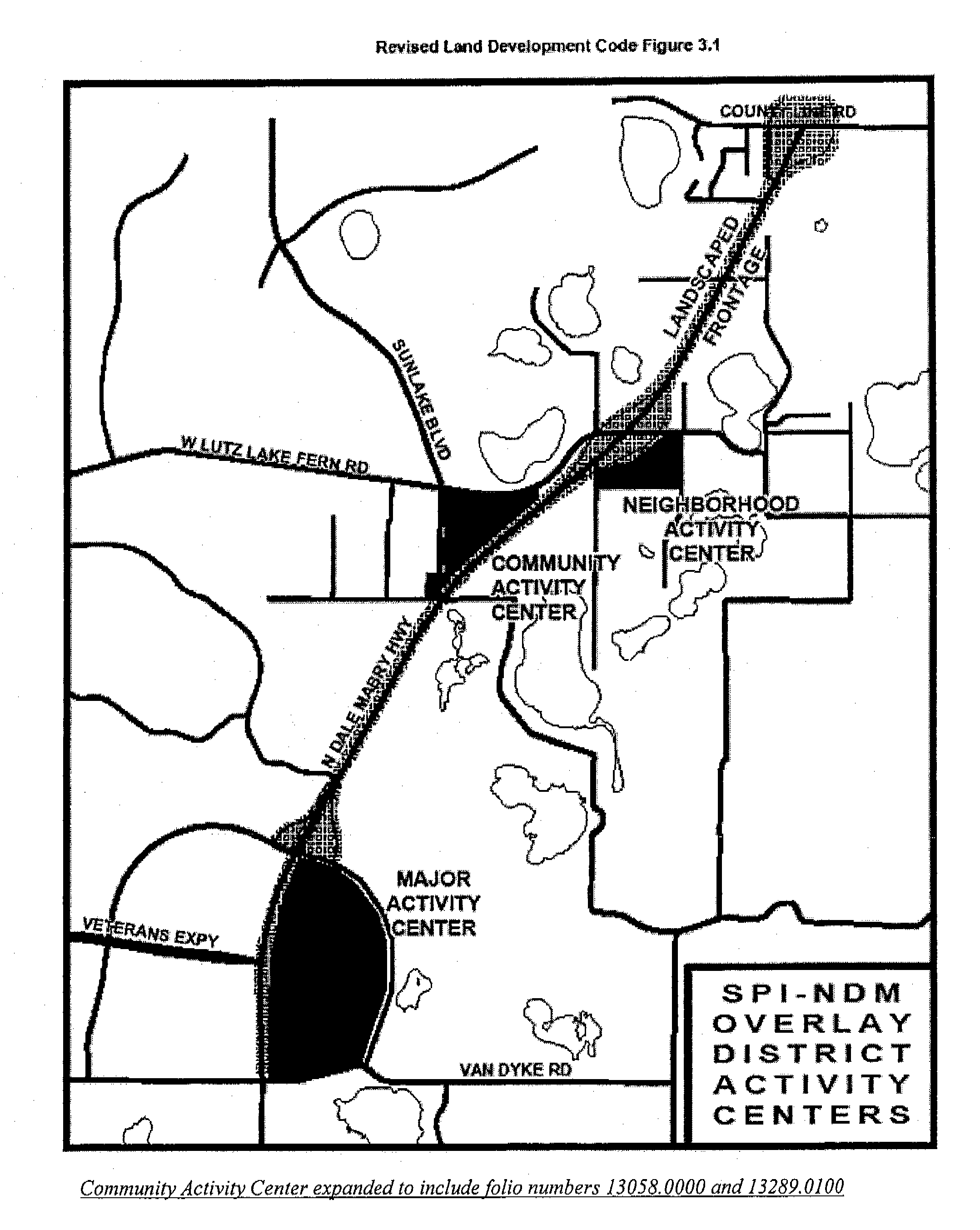 The intent of the North Dale Mabry Overlay District is to plan for future growth along North Dale Mabry Highway in an area located north of Van Dyke Road and south of the Pasco County line. This Overlay District prohibits the expansion of the strip commercial development pattern and preserves the integrity of the transportation system by identifying appropriate locations for activity centers to service the surrounding residential communities. The primary objectives are to provide a comprehensive pedestrian system and a quality view from Dale Mabry Highway along with the maintenance of this highway as a smoothly functioning arterial highway. The plan calls for the development to provide a parallel access highway system to increase capacity and control turning movements. The second element is a parkway 40 feet in width along the outside of the access road in which the pedestrian link will be provided.