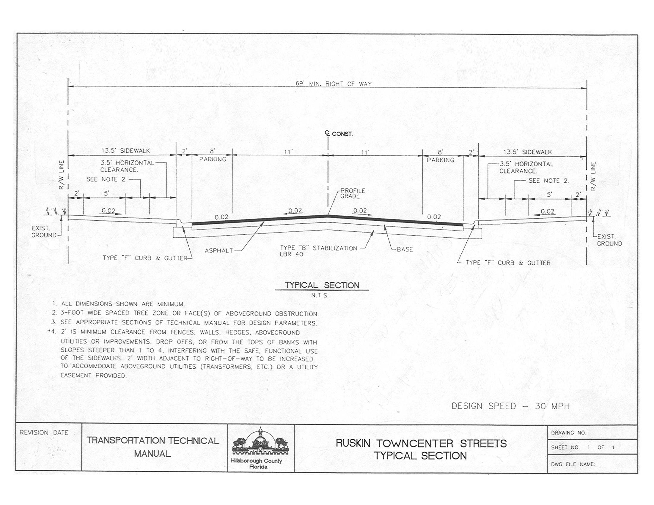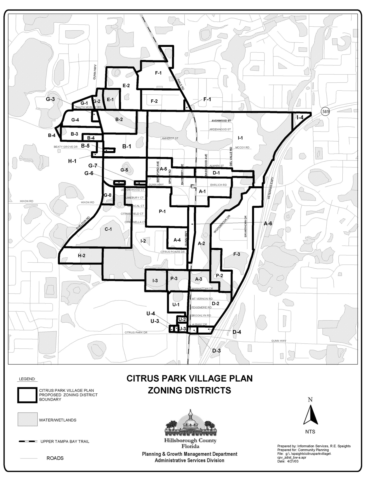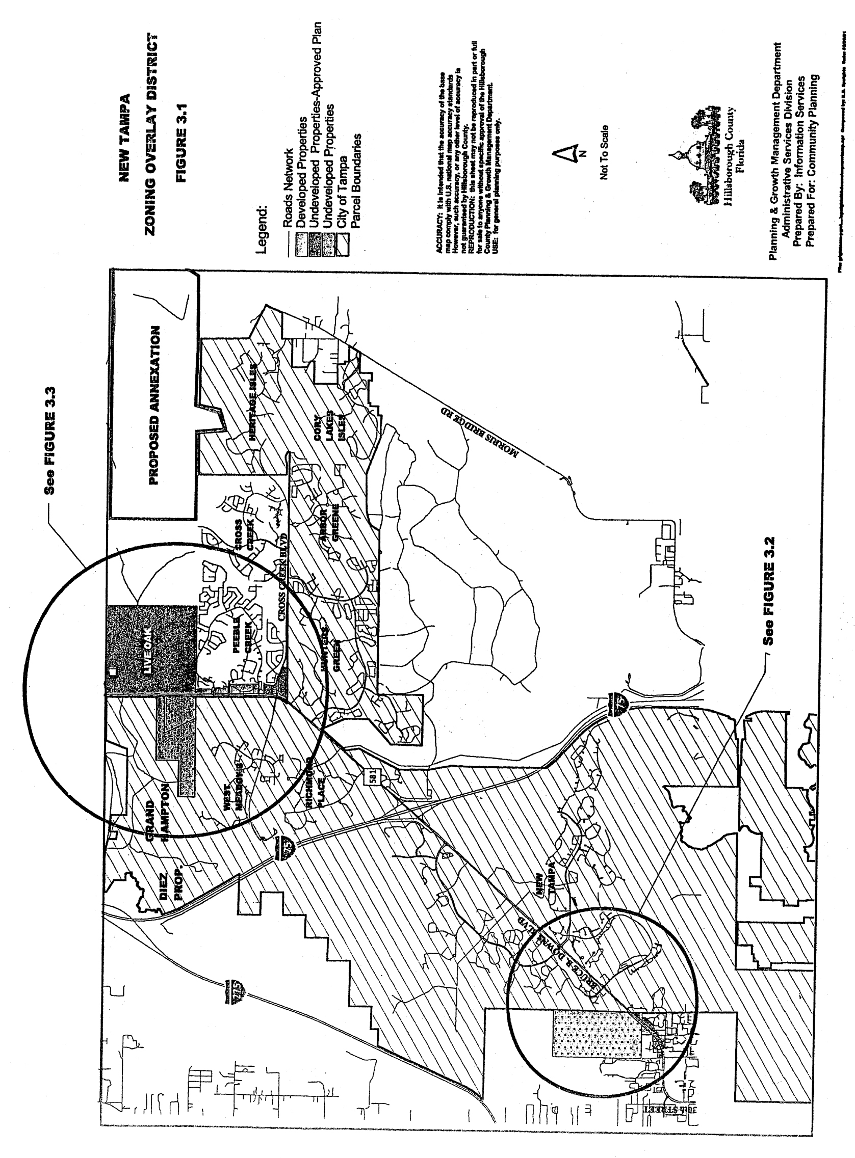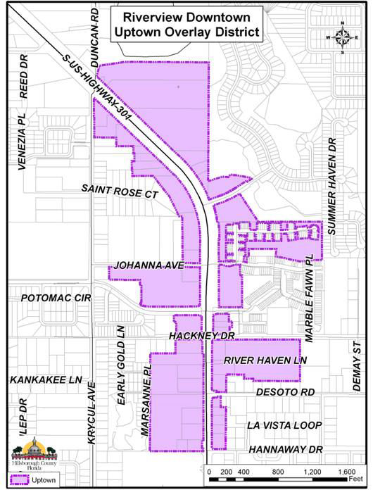The intent of the North Dale Mabry Overlay District is to plan for future growth along North Dale Mabry Highway in an area located north of Van Dyke Road and south of the Pasco County line. This Overlay District prohibits the expansion of the strip commercial development pattern and preserves the integrity of the transportation system by identifying appropriate locations for activity centers to service the surrounding residential communities. The primary objectives are to provide a comprehensive pedestrian system and a quality view from Dale Mabry Highway along with the maintenance of this highway as a smoothly functioning arterial highway. The plan calls for the development to provide a parallel access highway system to increase capacity and control turning movements. The second element is a parkway 40 feet in width along the outside of the access road in which the pedestrian link will be provided.