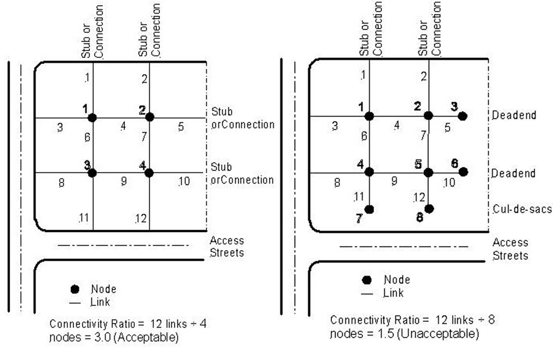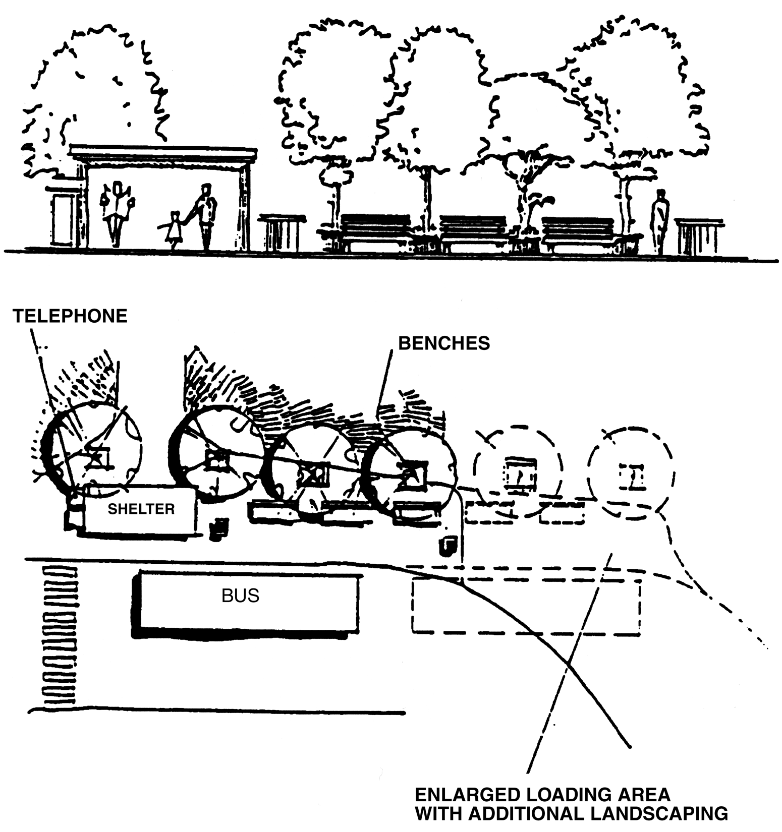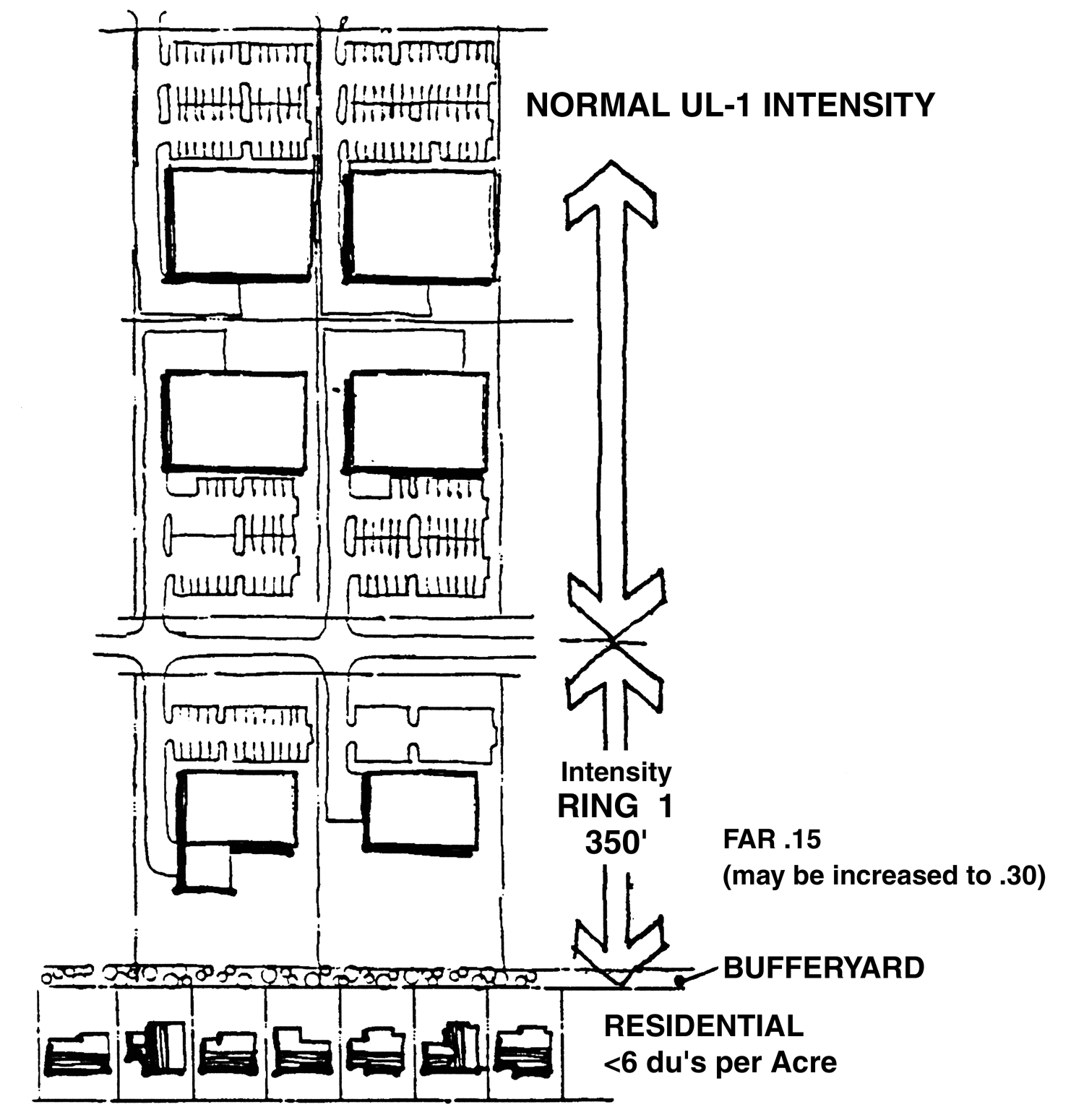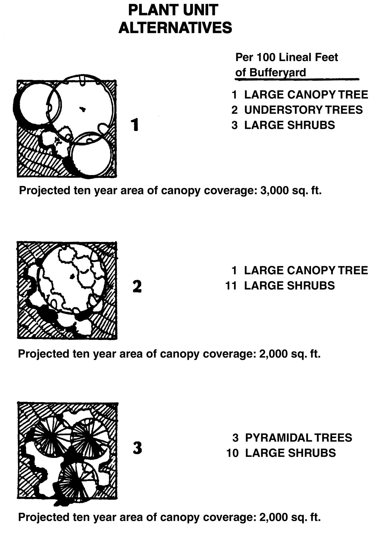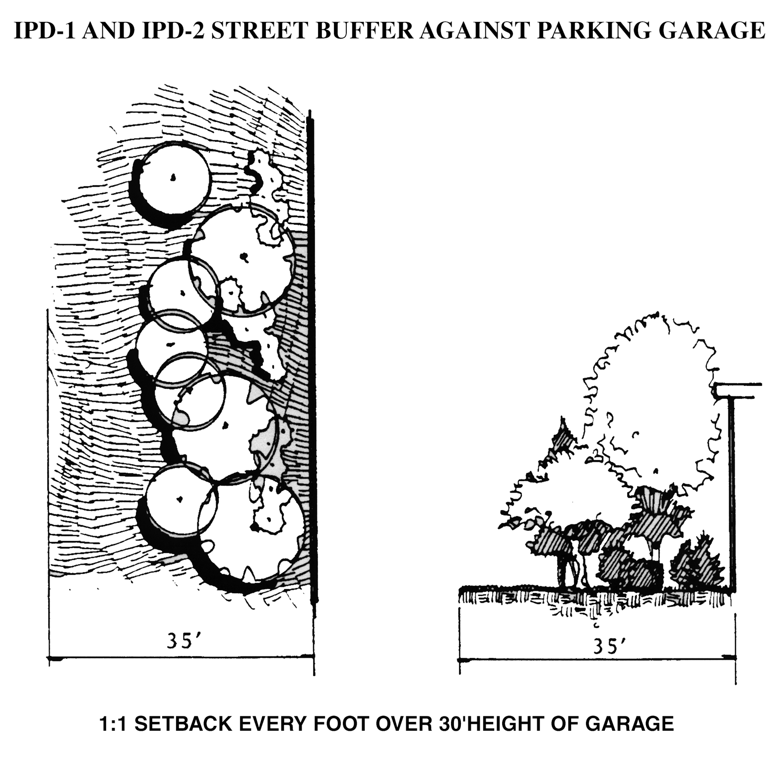 Activity centers permit any of the uses in the underlying commercial zoning. Activity centers shall provide a comprehensive pedestrian system which shall include the 40-foot parkway buffer in either of the two forms shown and a linkage to the shopping areas and any office areas. The development shall use one of the four forms described in paragraphs 1 to 4 and Figures 3.2 through 3.5 below.