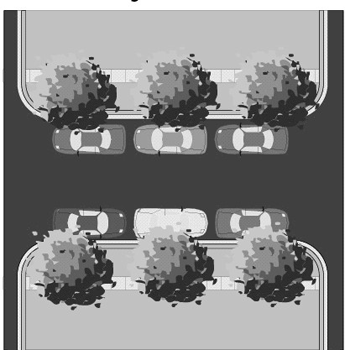 Surface parking lots for rowhouse units shall be located behind or to the side of the rowhouse units.