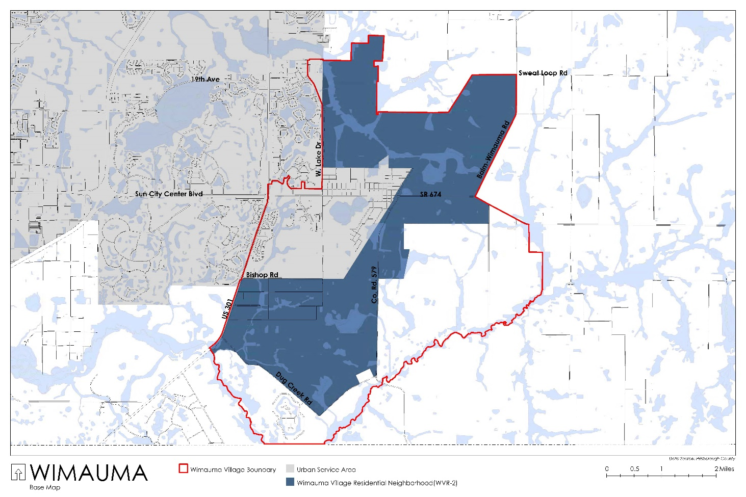 Areas within the WVR-2 FLU category (Rural Service Area) and not within Wimauma Village Downtown Overlay.