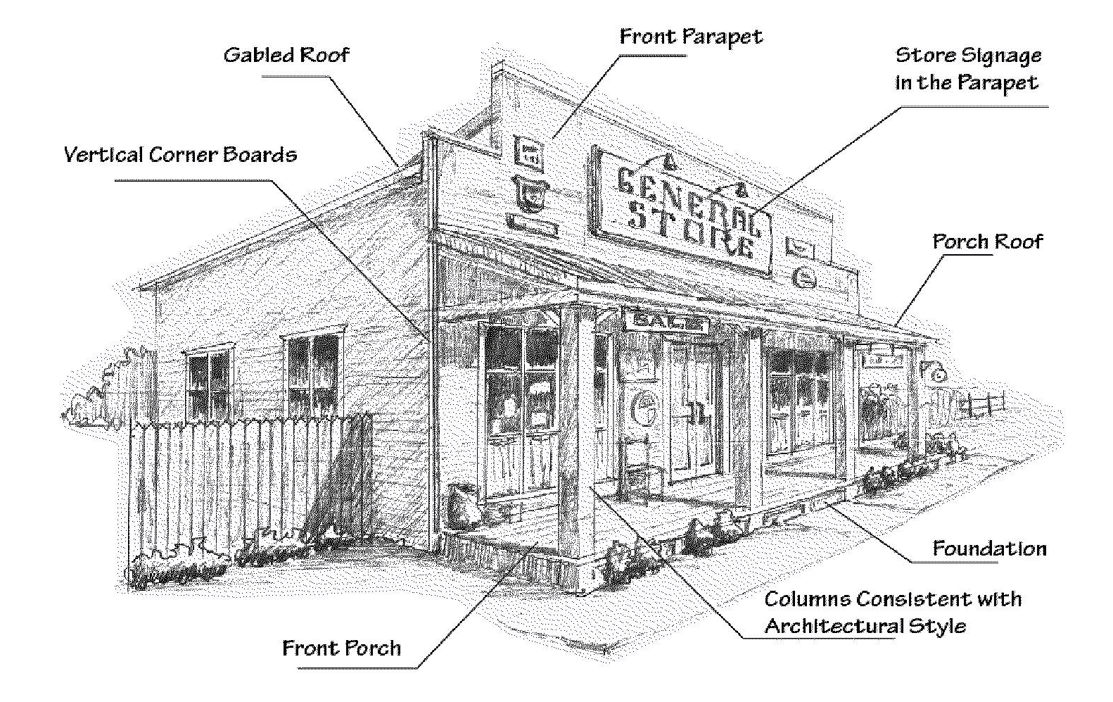The graphics shown on Tables 3.25-2 is intended for representation of the overall design of the structure as a reference only. These are conceptual drawings to be used as guidelines for each architectural style.