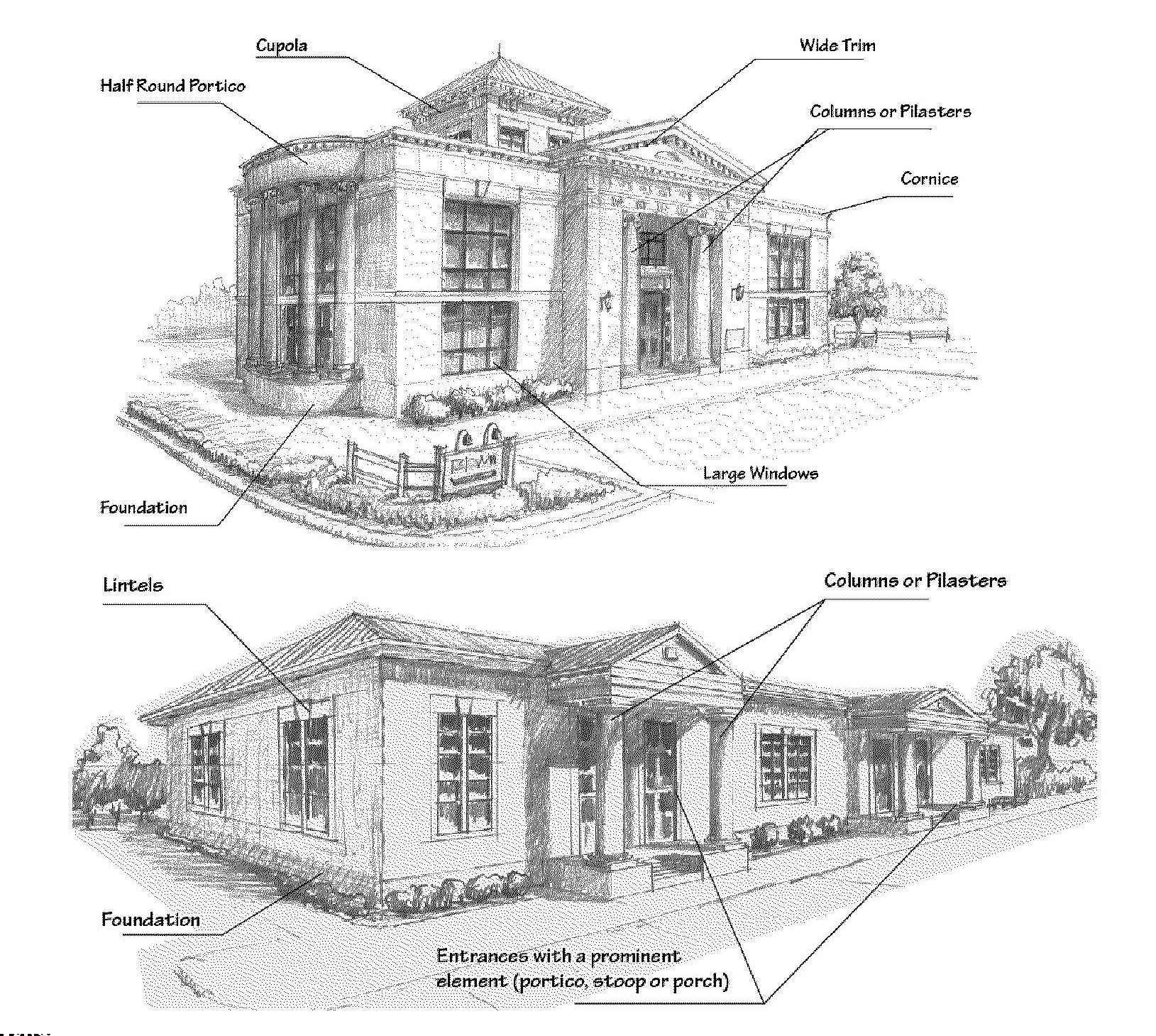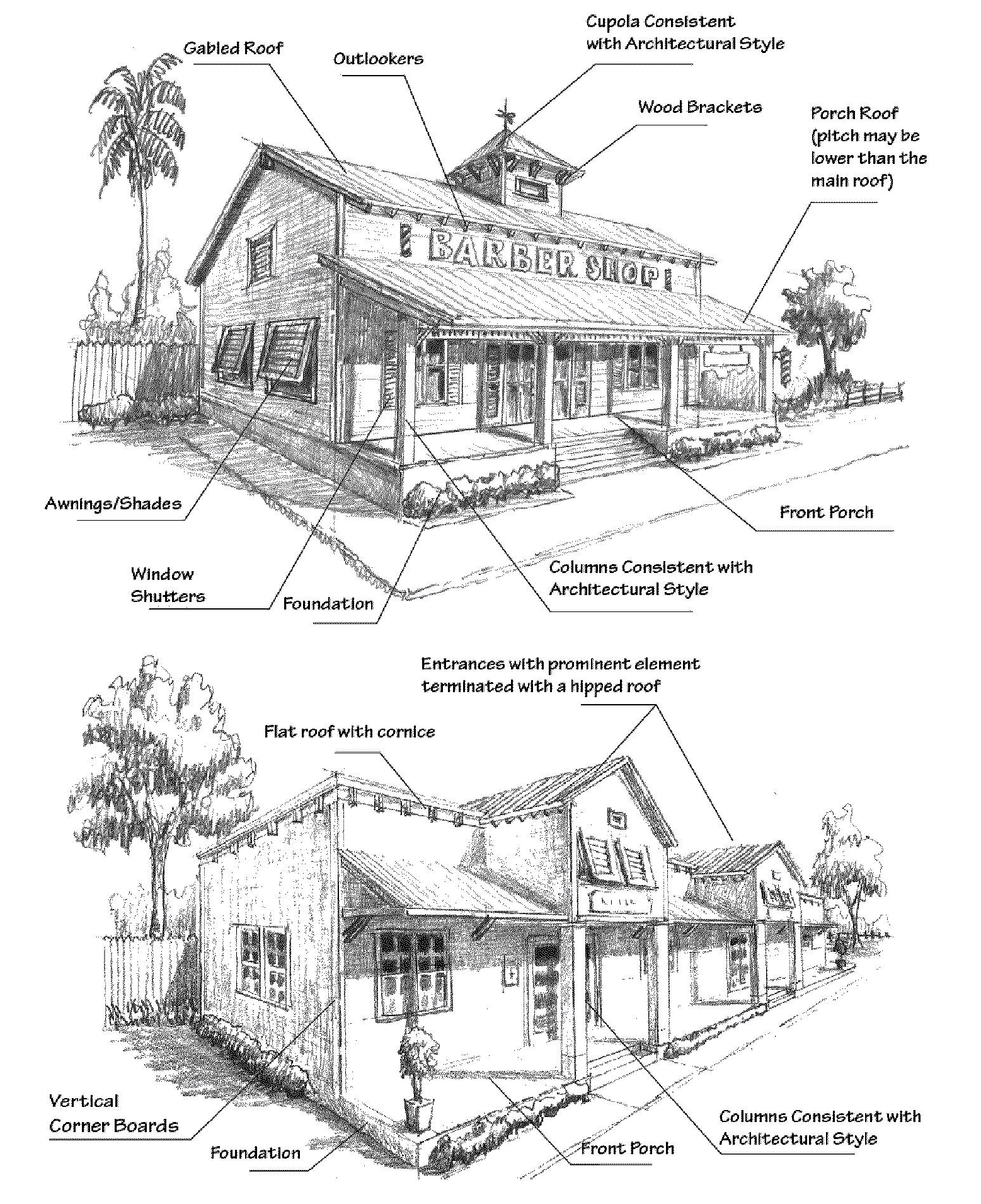 In order to preserve the rural character and heritage of this area, and to improve the appearance of new non-residential development within this overlay, architectural styles are being provided to be utilized in the design of new pro jects. Nothing in this Part, however, shall be construed to impose building floor plan design restrictions, but rather provide flexibility to use a variety of building design styles. Different styles including Florida Cracker, Greek Revival and Italianate are identified within this Part. The Neoclassical style would allow any combination of architectural features from all other styles resulting in a variety of housing and building designs.