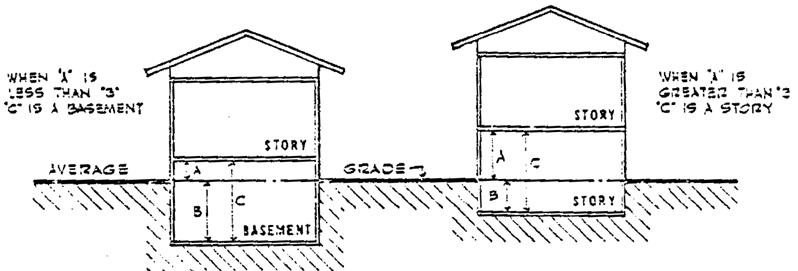 vertical distance from the average grade to the ceiling. A "basement" shall not be