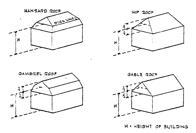 average height between eaves and ridge for gable, hip and gambrel roofs. Where a building