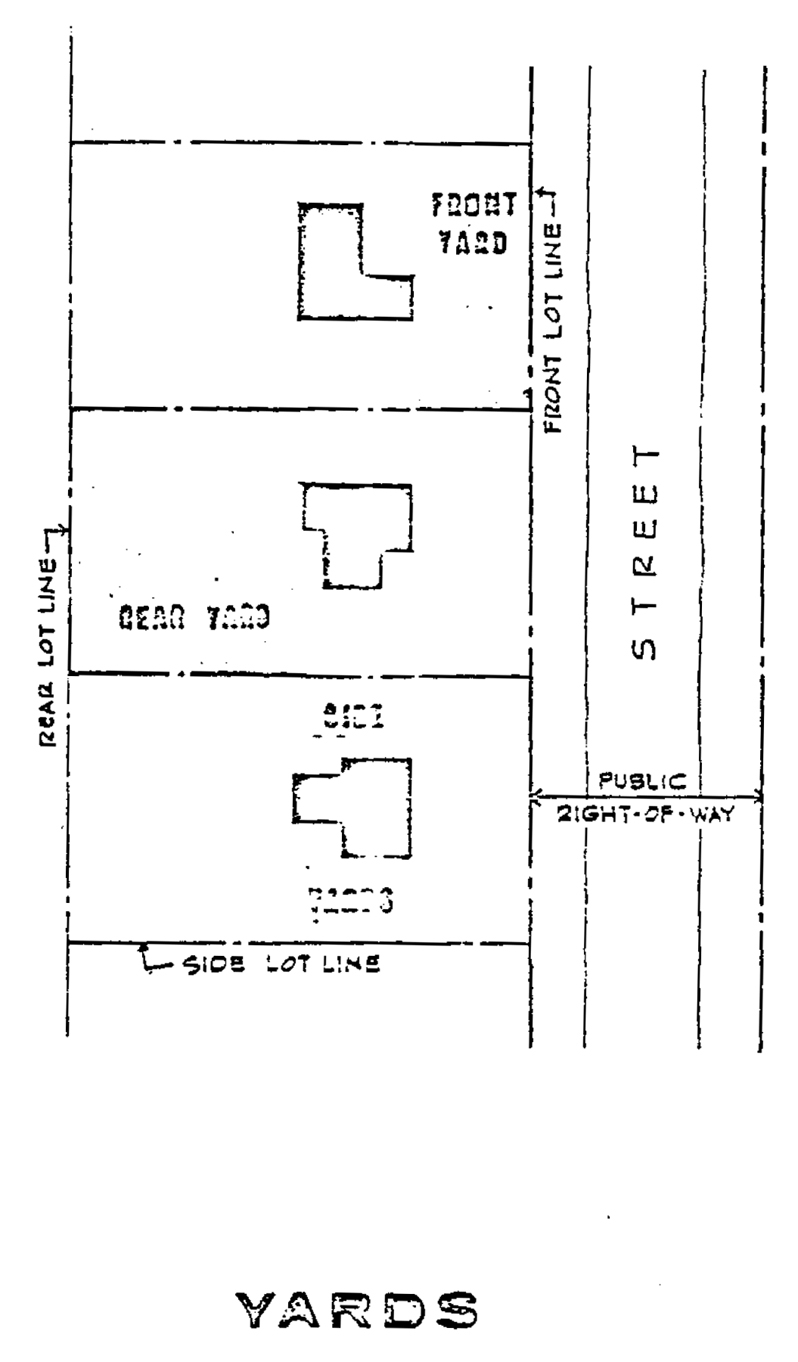 Yards means the open spaces on the same lot with a main building unoccupied and unobstructed from the ground upward, except as otherwise provided in this chapter, and as defined in this section: