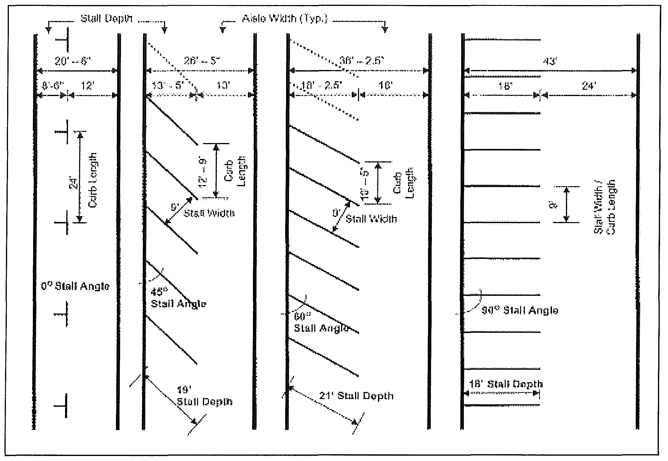 Plans for the layout of off-street parking facilities shall be in accord with the following minimum requirements: