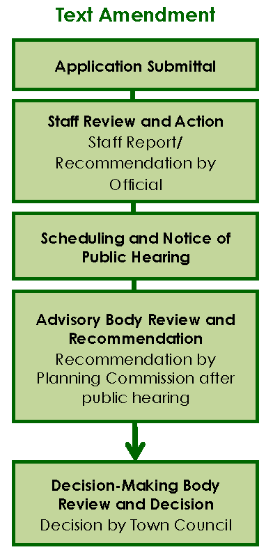 Table 16-2-101, Summary Table of Development Review Procedures, identifies the Town boards and staff responsible for making recommendations or decisions on applications reviewed under this Ordinance, as well as the role each plays in the Town's review of applications. It also identifies those applications that require a hearing. A textual summary of the development review responsibilities of the Town's boards established in accordance with State law by this Ordinance (Planning Commission, Board of Zoning Appeals, and Design Review Board), as well as staff responsibilities (the Official), is set down in Appendix A: Advisory and Decision Making Bodies and Persons, which is incorporated herein by reference. The specific rules that govern the Town's boards with review responsibilities are also included in Appendix A.