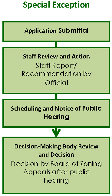 A final decision by the Board of Zoning Appeals on applications for Special Exceptions and Variances.