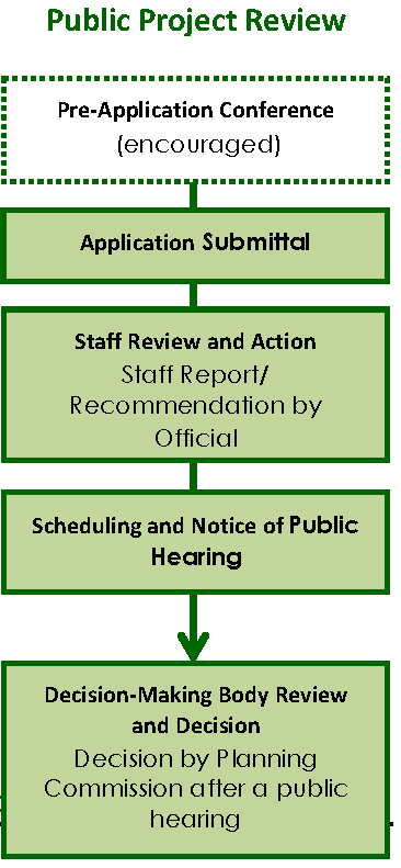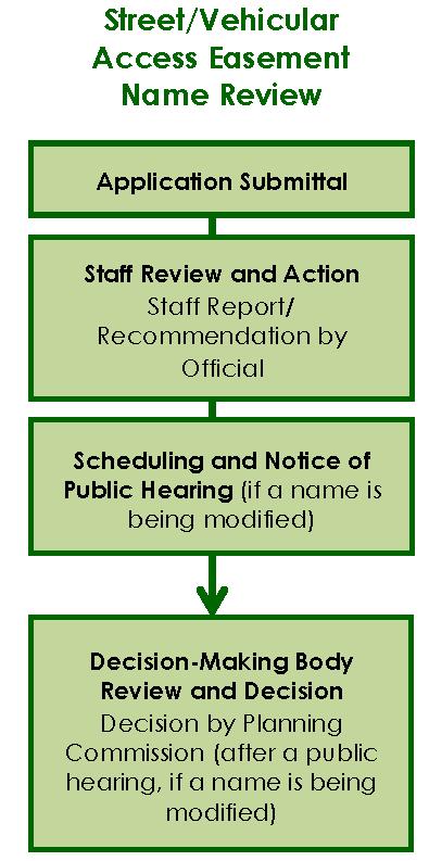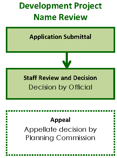 A final decision by the Planning Commission on applications for Public Project Review or Street/Vehicular Access Easement Name Review.