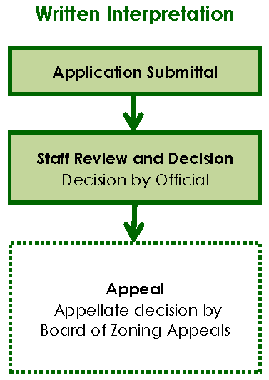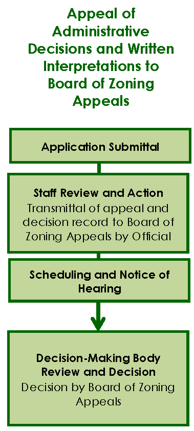 Sec. 16-2-103.T, Appeal of Administrative Decisions and Written Interpretations to Board of Zoning Appeals, Sec. 16-2-103.U, Appeal of Official's Decision to Planning Commission, and Sec. 16-2-103.V, Appeal of Official's Decision to Design Review Board, authorize and set forth procedures for internal Town appeals of various decisions, determinations, and interpretations by the Official.
