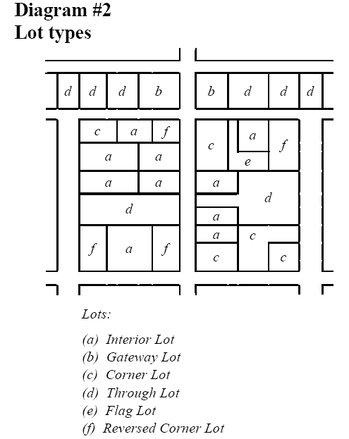 Lot, interior: A lot other than a corner lot or reversed corner lot (see Diagram #2).