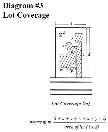 Lot coverage: The area of a zoning lot occupied by the principal building or buildings, accessory building(s) and other impervious surfaces (see Diagram #3).