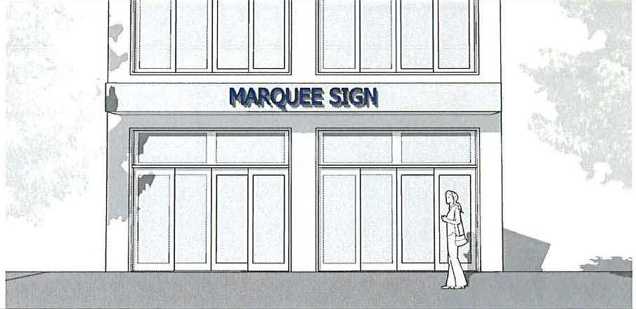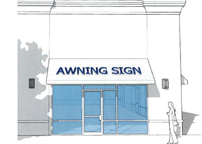 Signs appropriate to the Downtown Mixed-Use District include: stenciled window signs, hand-painted and flush-mounted wall signs, spandrel panel signs, hanging or projected medallion (pendant) signs, awning signs, manual changeable copy signs and marquee signs. On-building signage must not exceed 200 cumulative square feet in total area.