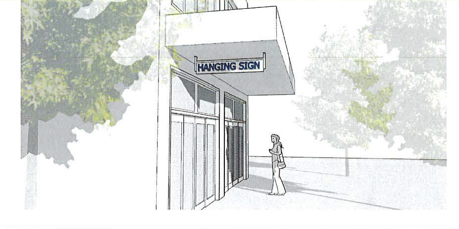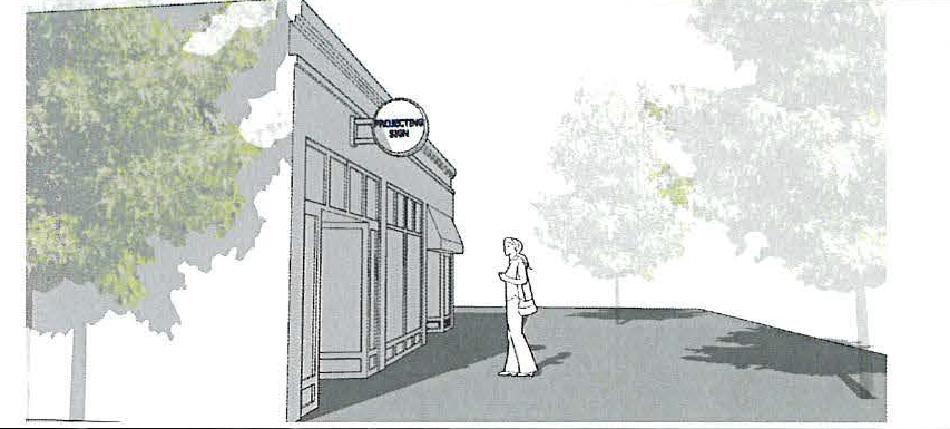 Signs are considered as part of the architecture of the building and should not overwhelm or detract from the building design by their size, placement, shape, and material quality.