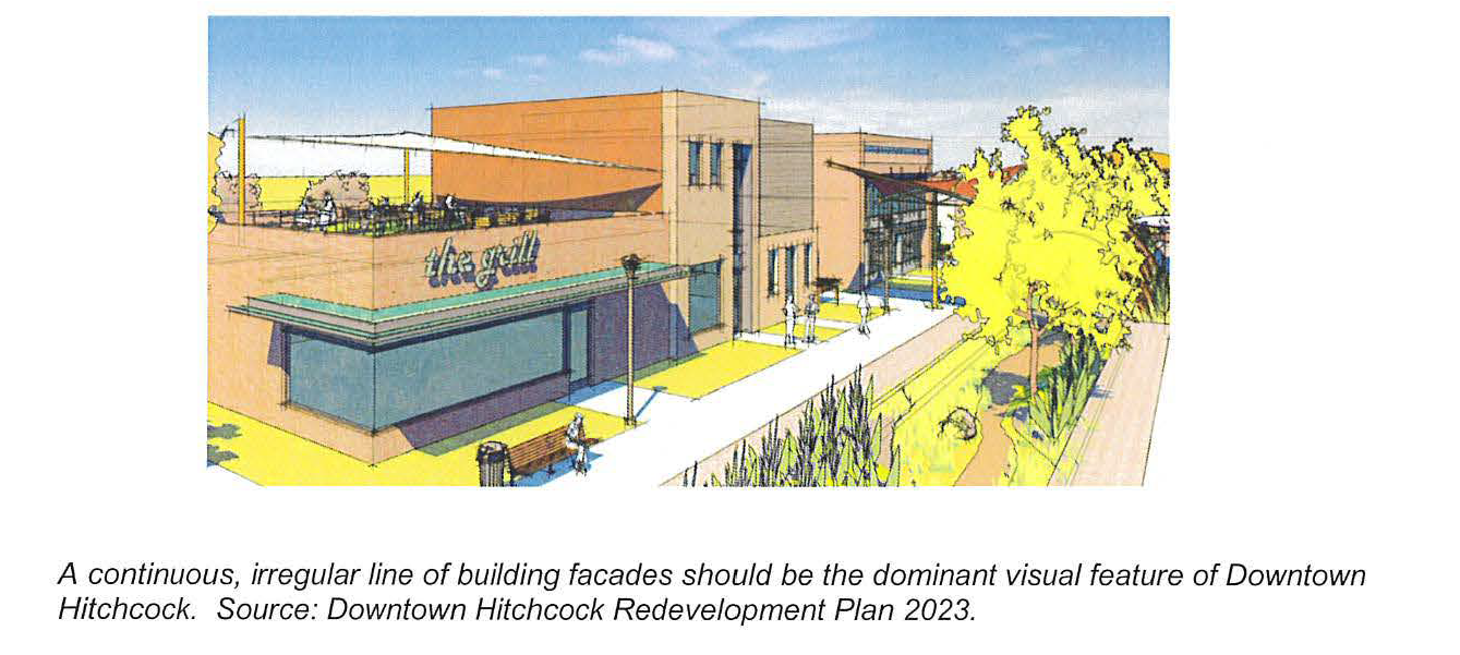 For parcels along Highway 6 frontage, landscaping is required in the front setback and the side street setback and shall include one tree for every 40 linear feet of frontage. Twenty percent of the land area located within the front yard or street yard setback area shall be landscaped with native, drought-tolerant, perennial plant material and appropriately mulched. The remainder of the area shall be maintained with turf grasses or additional native, drought-tolerant plant material but may not be filled completed with mulch material.