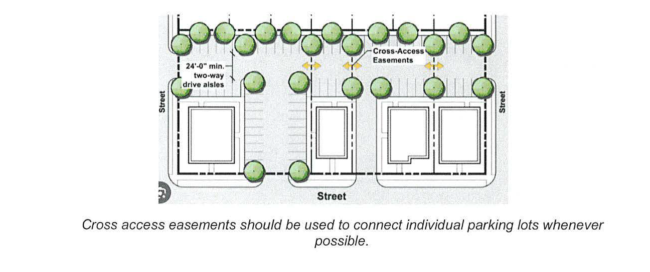 Driveway locations on principal streets shall be spaced at least 100 feet apart subject to the additional terms of (D)(1)(c) iii above.