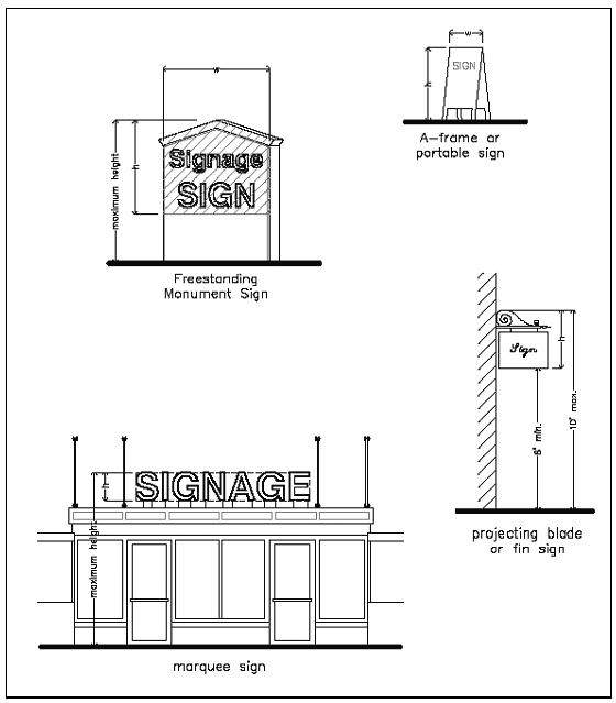 Note: The use of neon signs shall be prohibited in the Residential and Home Office Zoning Districts. The use of neon in the Downtown Mixed-Use District is permitted with approve of an Administrative Sign Review Permit.