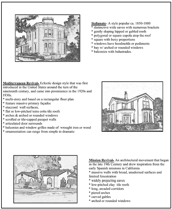 The purpose of these design standards is to promote infill development that reflects the architectural styles and site development patterns that were used prior to World War II. These standards are intended to promote structures with a style and massing that are complimentary and compatible with earlier architectural styles of the area. Structures shall be sited to be compatible with predominate pattern in a block as observed from the street frontage of the block.