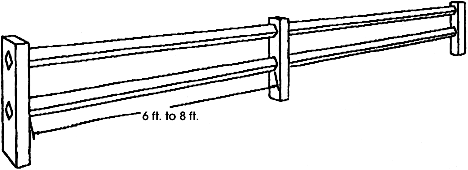 A row of trees a minimum of eight feet tall and a maximum of 25 feet apart shall be planted around the base of the tower. If a fence surrounds the tower, the trees shall be located outside the fence.