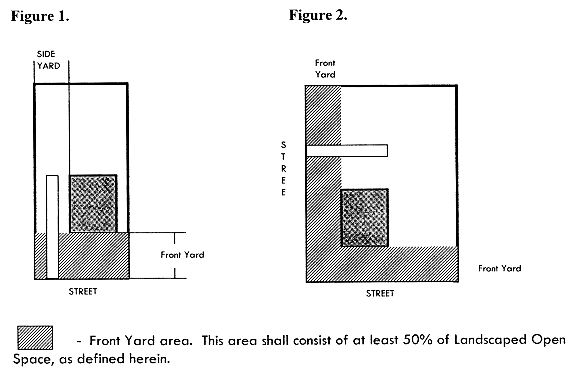 Where a required off street parking space is in the form of a parking lot or other open air parking space, it shall not be located within five feet of a street line or within five feet of any other lot line. Greater setbacks may be required in specific instances elsewhere in this appendix.