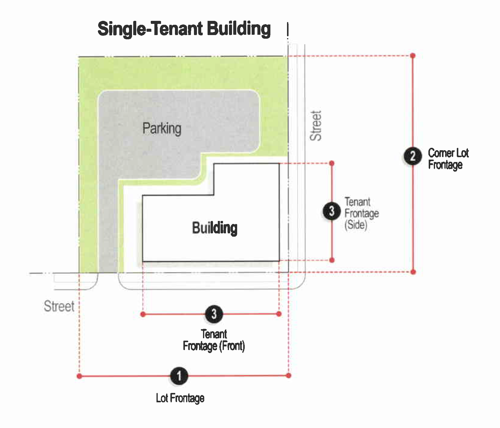 Figure 44-10-04(c)(1) Frontage Measurements for Single-Tenant Buildings