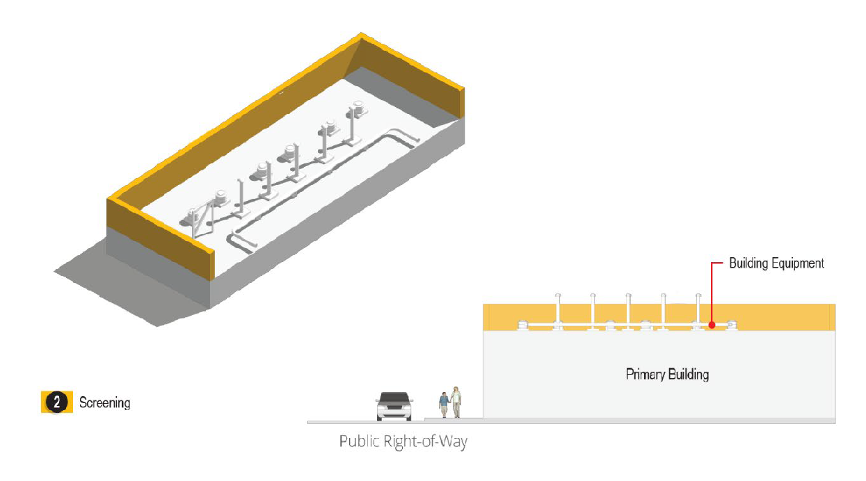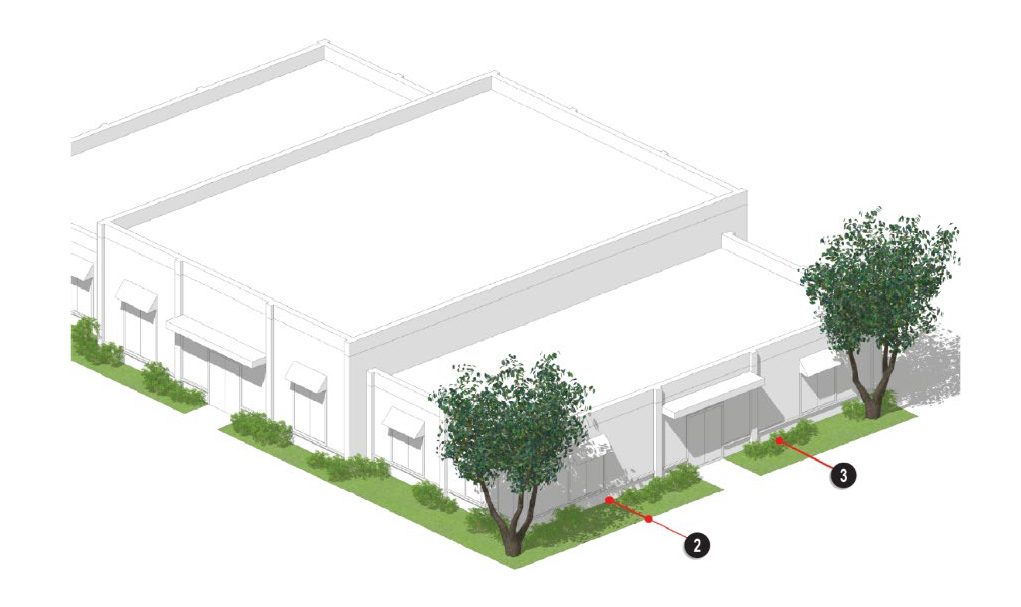 Buildings within a planned development that front a public right-of-way, private drive aisle, or parking on three or more sides, shall apply the requirements of one front and two exterior sides.