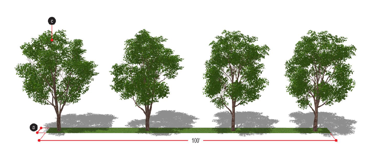 The clear sight triangle shall be measured perpendicular to and starting at the back of curb of each intersecting street or driveway.