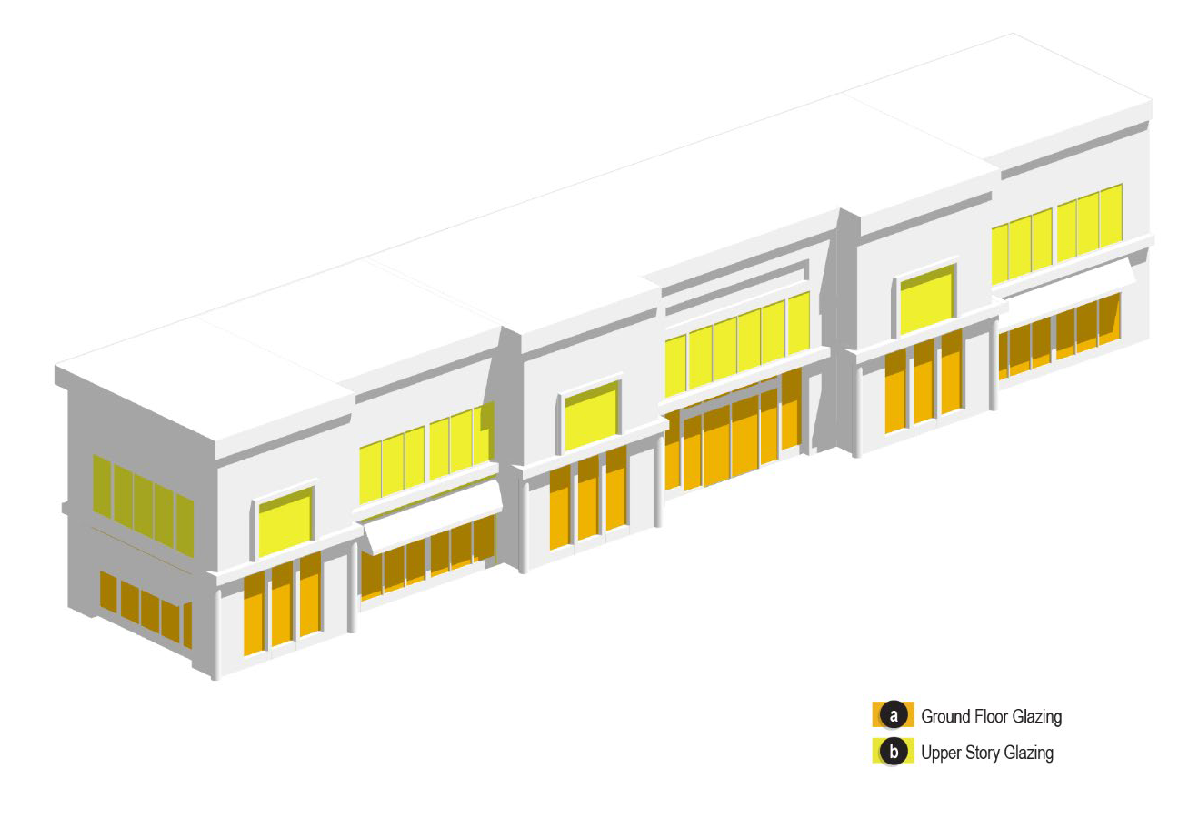 Upper story requirements. For each story above the ground floor, provide a minimum 20 percent transparent glazing per elevation.