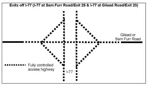 Fully Controlled Access Highway. Interstate I-77, off ramps and areas adjacent to them that are located within the length of the control access fence.Grade. The height of the top of the curb, or if no curb exists, the height of the edge of pavement in the lane of travel adjacent to the sign.